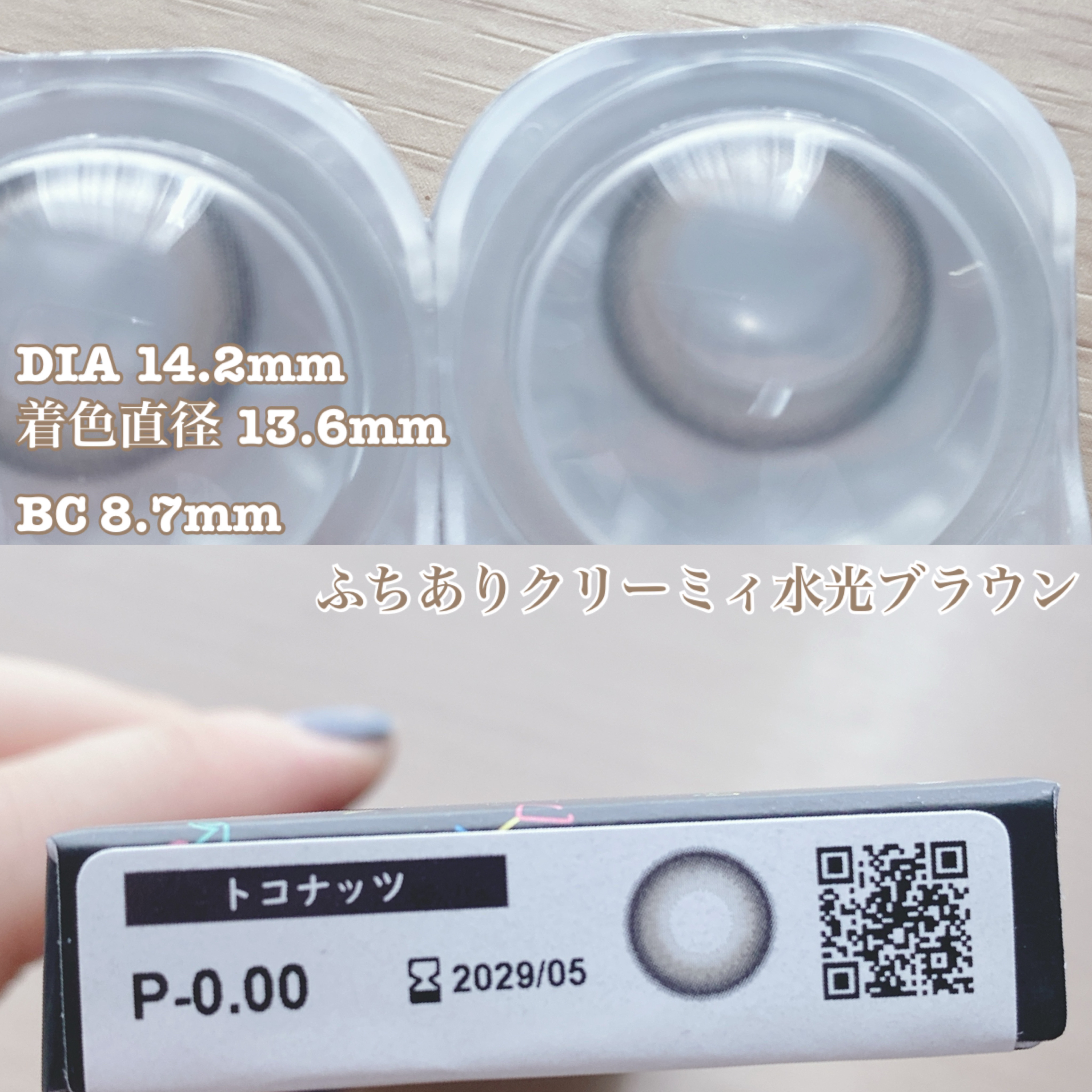大好きなメイメから1年ぶりに新食カラコンが登場😭💗 幸せホルモン爆アゲの甘めレンズ! 超自然に立体感を出してくれる柔らかブラウンカラコン💛 フチはないけど全体的にほんわりしてるから優しい目にしてくれる✨ 非対称の細フチでつくるしゅわっとブルーグレーレンズ💧🩶 小さめだけど存在感ハンパない💥
