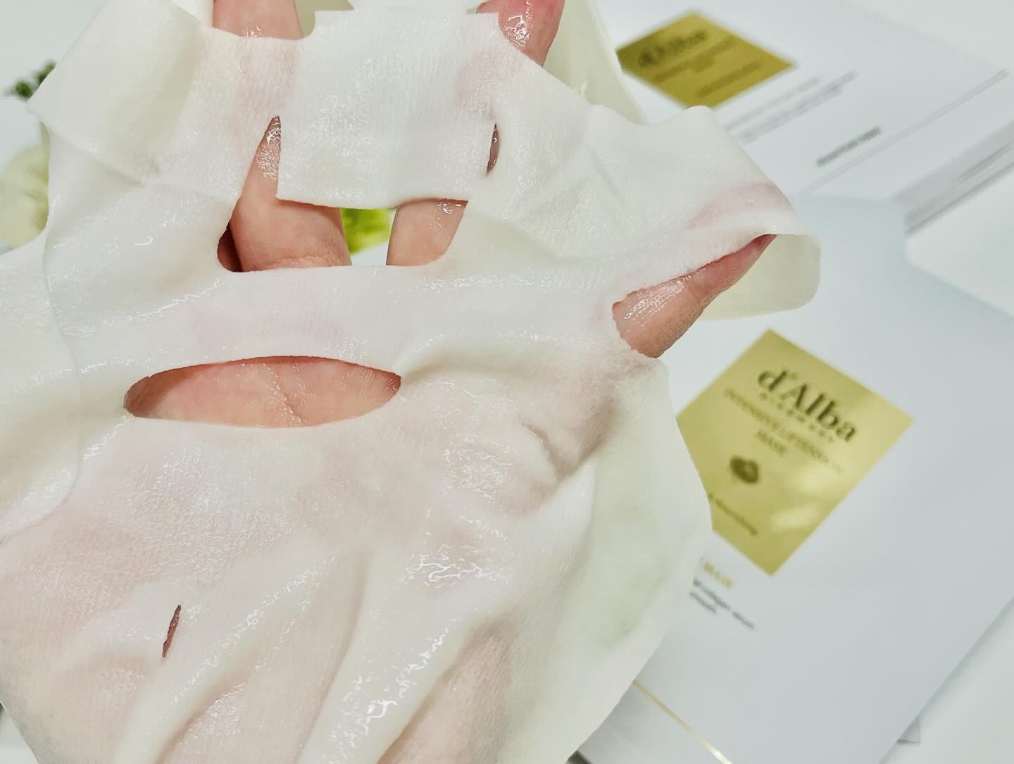 ダルバ(d'Alba)といえば、韓国の人気コスメブランドとして、スキンケアからメイクアップまで様々なアイテムを取り扱っていますが、中でも主力アイテムとして人気が高いのは「ファーストスプレーセラム」🚿 イタリア産ホワイトトリュフ*が肌に水分を供給し肌を整えて、ざらついて乾燥の気になる肌をなめらかでツヤのある肌に導きます。 厚めのシートで切れ込みがありフェイスをしっかり引き上げて貼り付けるタイプのシートマスクで、グイグイ持ち上げても丈夫~ *˘⌣˘