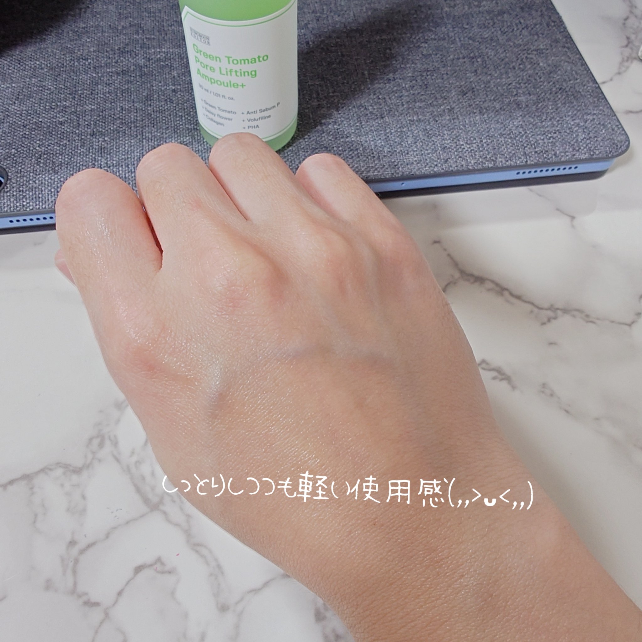 トロリと濃厚なテクスチャーですが、お肌に伸ばすと不思議とサラサラ👀 しっとりとした使い心地。とてものばしやすく、少量で行き渡らせることができました こんな時期でもすごく使いやすかったです🙌✨