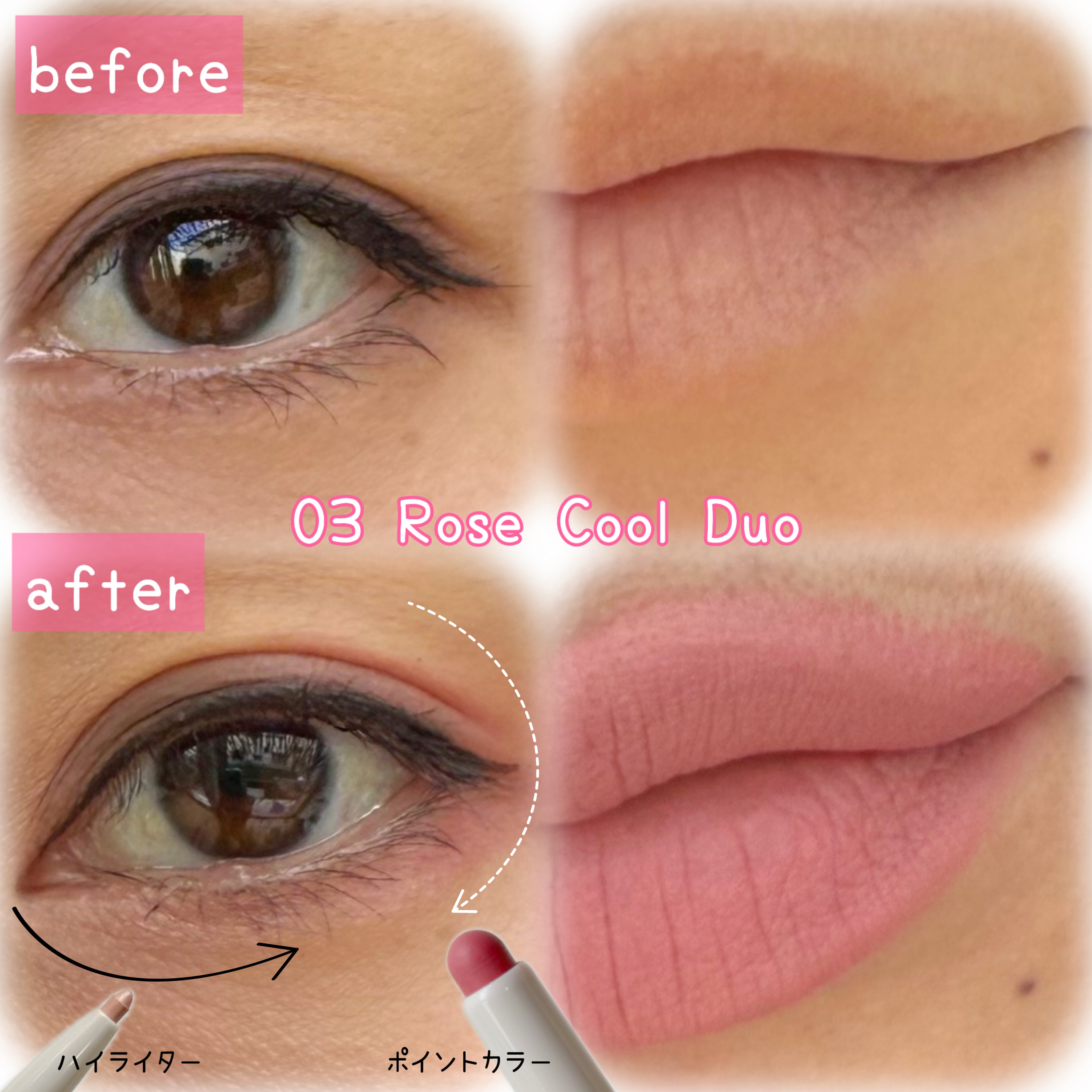 ポーチに忍ばせておくのにもピッタリなサイズ感!keyboマルチレイヤーデュオスティック✧01Linecutshadingゼロからラインを作れる!シェーディング+コンシーラーデュオ鼻筋、涙袋、フェイスライン、ほうれい線カバーに!✧02Peach...
