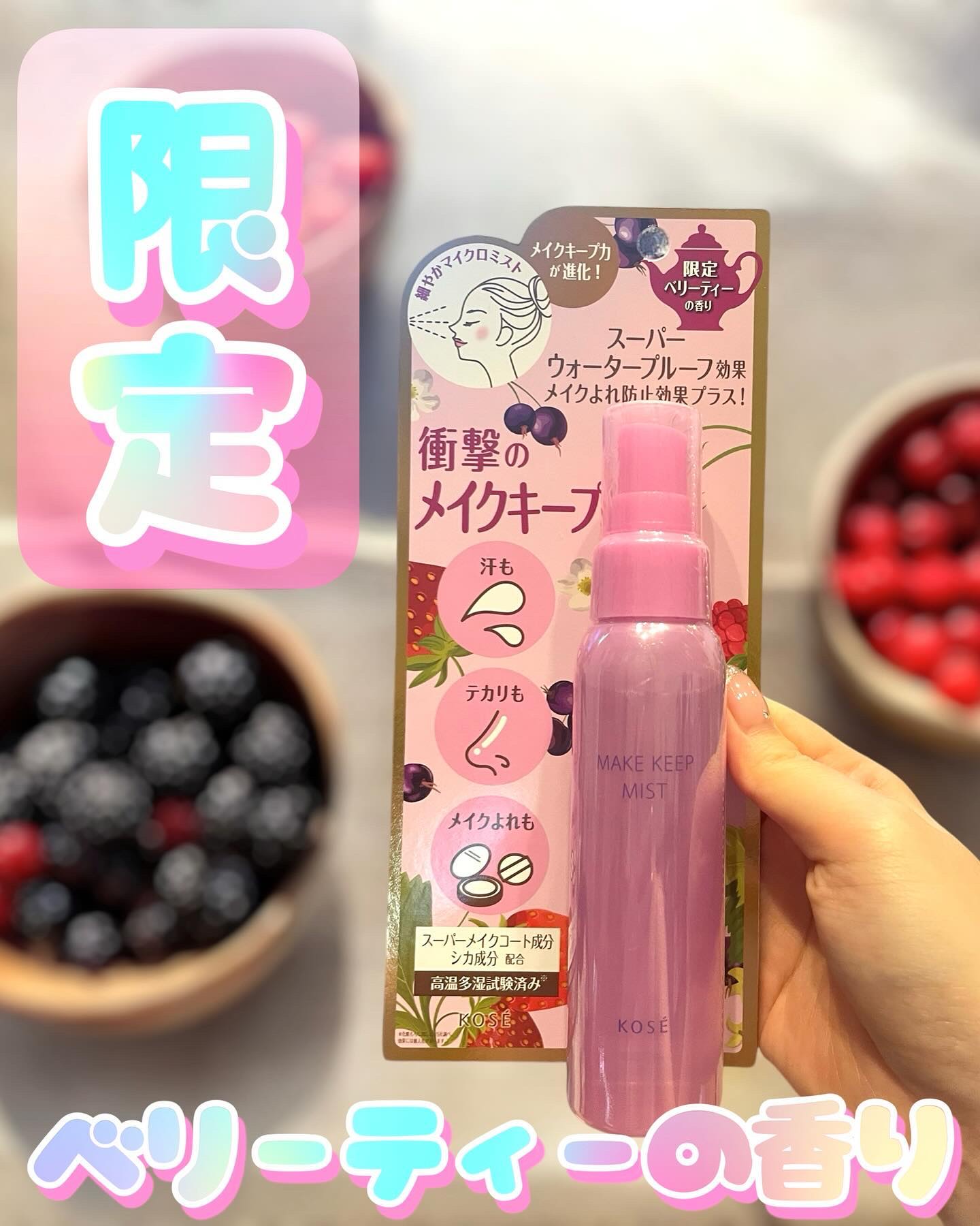 化粧くずれを防ぐ2層タイプのメイクキープミスト。【限定ベリーティー】の香り🍓🫖 大人気メイクキープミストに🍁秋限定🍁のベリーティーの香りが登場! ピンクパケでかわいい! そして限定の香り系がどれも当たりすぎてすっごくお気に入りのシリーズ!!!