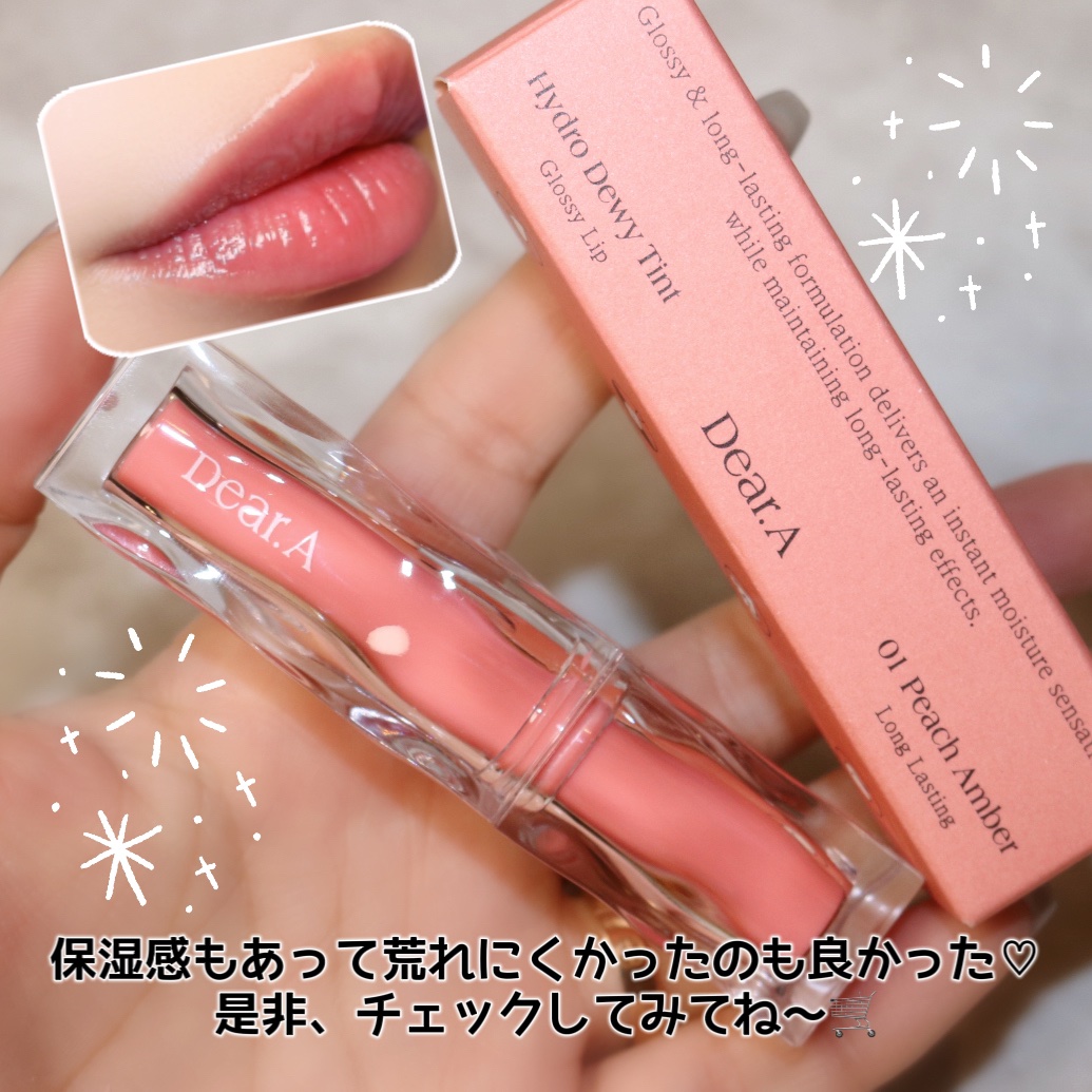 色味ももちろん可愛さ100ですが塗り重ねれば塗り重ねるほどツヤツヤする仕上がりで、ムチッと上品な唇に☺️ Dear.A ハイドロデュイティント 01.ピーチアンバー ¥1,600 Qoo10にてお求め頂けます🍬🫶🏼