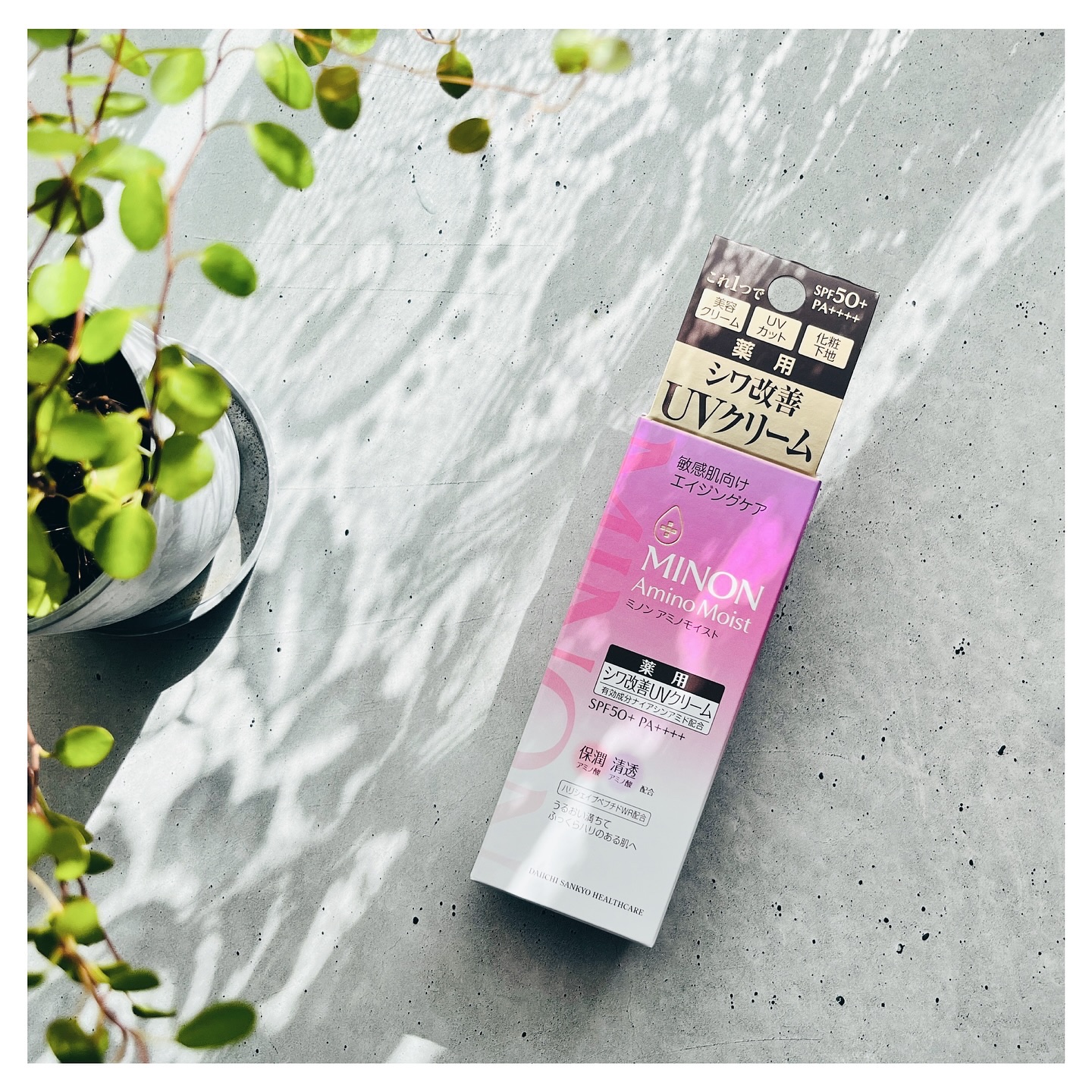 - 【シワ改善もできるUVクリーム】 SPF50+PA++++ シワ改善×UVカットが出来る薬用シワ改善UVクリーム。これ1本で美容クリーム・UVカット・化粧下地の3役。 シワ改善&しみ*予防成分「ナイアシンアミド」、肌あれ予防成分「グリチルリチン酸2K」配合。紫外線吸収剤&酸化亜鉛フリーで敏感肌を考えた処方。自然な輝きを放つ、やわらかなテクスチャーの化粧下地、見る角度で反射色が変わる「艶肌ダブルカラーパウダー」配合で自然な立体感を演出。 エイジングケア:年齢に応じたお手入れケア *メラニンの生成を抑え、しみ・そばかすを防ぐ (販売名:ミノンアミノモイストAU)【医薬部外品】