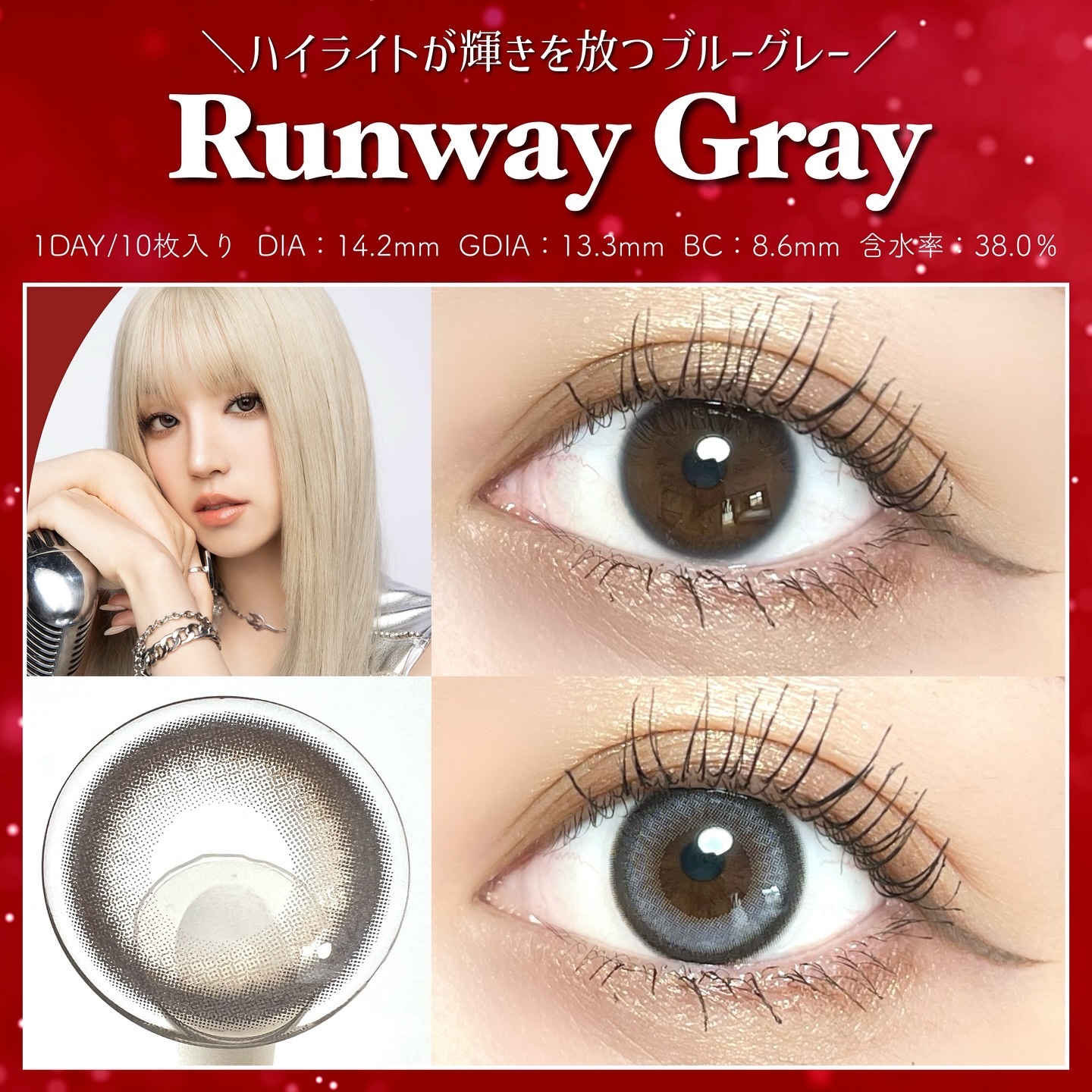 こちらは、(G)I-DLE ウギちゃんイメージモデルのカラコンになります。▶︎Runway Gray は、ブラックの太縁にヒヤッとしたグレーのハイライトが入ったカラコン。 K-POPアイドルのような瞳になれちゃう!! 盛れるグレーカラコンお探しの方におすすめ!!