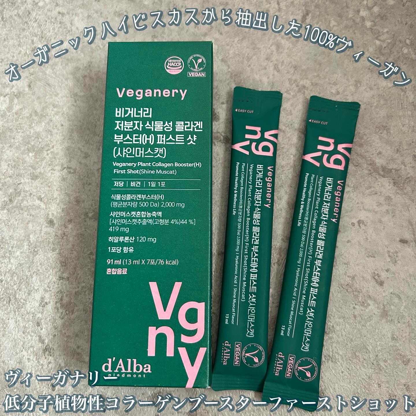 1日1包でコラーゲンからヒアルロン酸、ビタミンまで摂取できる❣️ 植物性の高吸収ビーガンコラーゲン✨ シャインマスカットフレーバーで美味しいの❣️ オーガニックハイビスカスから抽出した100%ヴィーガン植物性コラーゲンブースター 2,000mgで、低分子コラーゲンブースターで高吸収👏✨
