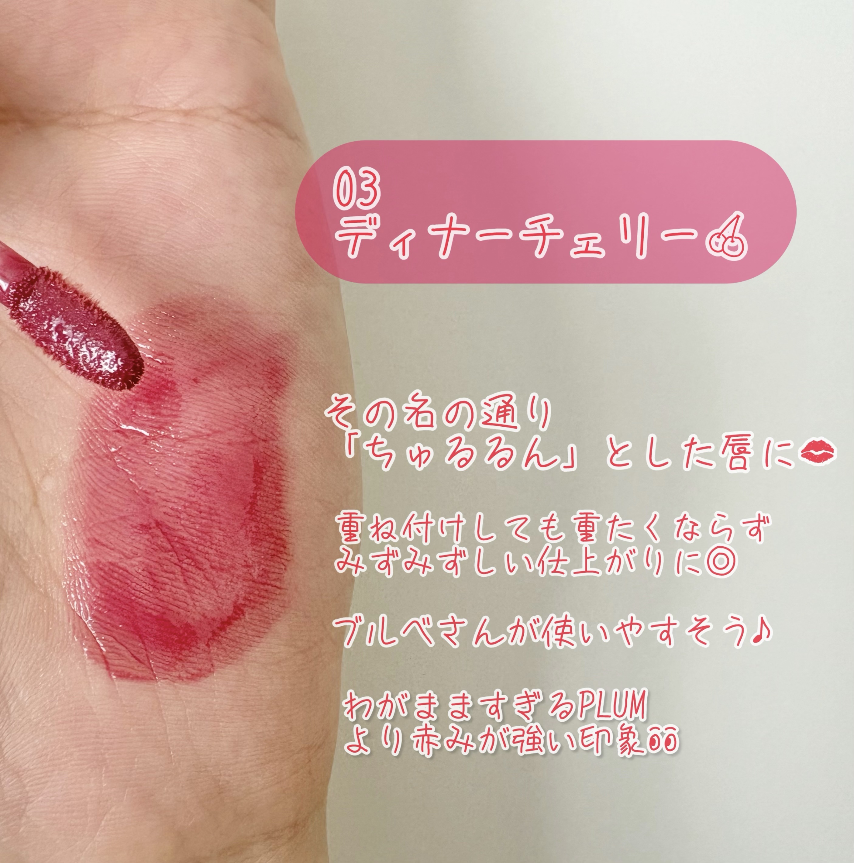 | 口紅・グロス・リップライナーランキング第61位 | ほんのりフルーツみたいな良い香りがします🍎 付けた感じのテクスチャーはぷるもち系ですね | 詳細を見る | |