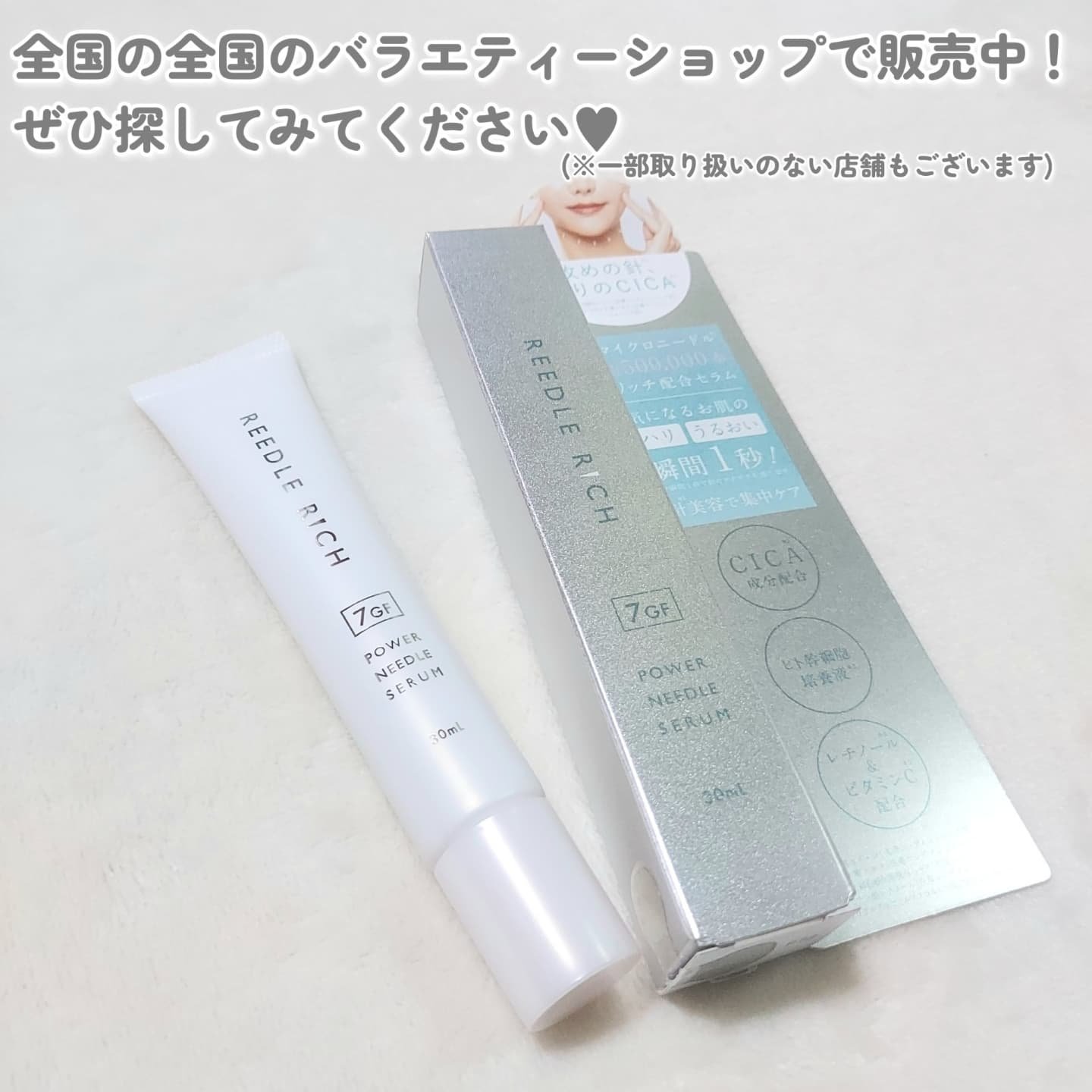 - 瞬間1秒 針美容で集中ケア。独自製法で作られた高純度99.9%の天然マイクロニードルを1本あたり500,000本配合したリッチセラムです。皮膚科学の技術を活用した成長因子7GF*1やヒト幹細胞エキス*1、CICA*2、ビタミンC*1も贅沢配合しています。肌に配慮した処方。日本製造。 *1整肌成分 *2ツボクサ葉エキス(整肌成分)