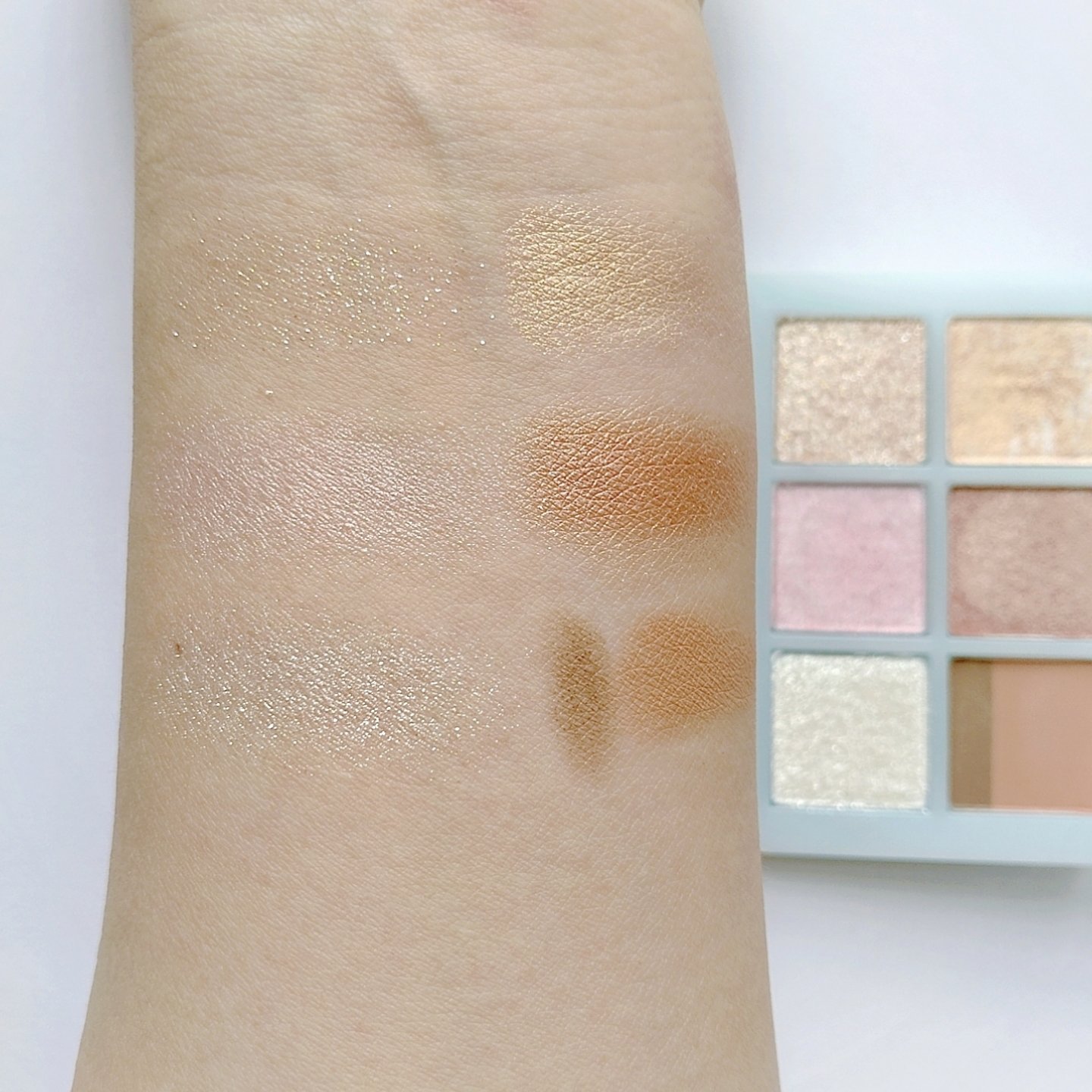 プチプラのクオリティじゃないっ!! 発売前からチェックしていたけれど、ここまで可愛いとは…😆 絶妙カラーで目もとのくすみを飛ばして*明るい印象に🩷 横割りグラデーションでメイクし、立体感をより出したかったので最後に1番左のカラーを上まぶたの真ん中と涙袋にのせています🙆 肌馴染みも良くて粉飛びも感じにくかったです💕 ブラウンの方も店頭に出てたら買おうかな💓