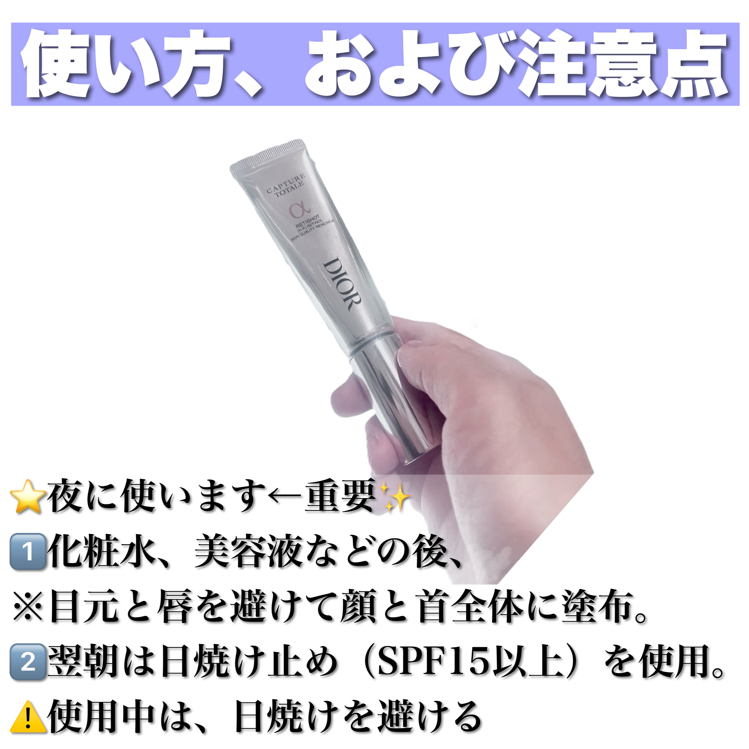 期待のレチノール美容液発売❣️ その名も✨カプチュール トータル レチショット✨ 大人気のビタミンA成分の、純粋レチノールの夜用美容液です❗️ レチショットを使うと肌がつるんとして“たるみやシミのケア”ができる印象はありました。