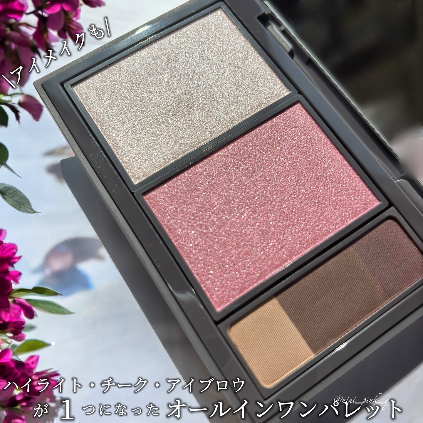 ハイライト・チーク・アイシャドウ・アイブロウとして使えるオールインワンパレットはすごい! パーソナルカラーのプロが監修した絶妙な配色で、ブルベ冬の診断を受けている私も使ってみて、これはドンピシャ!という気持ちです🌠 冬パレットは青みピンクがメインの透明感ある上品で洗練された色味