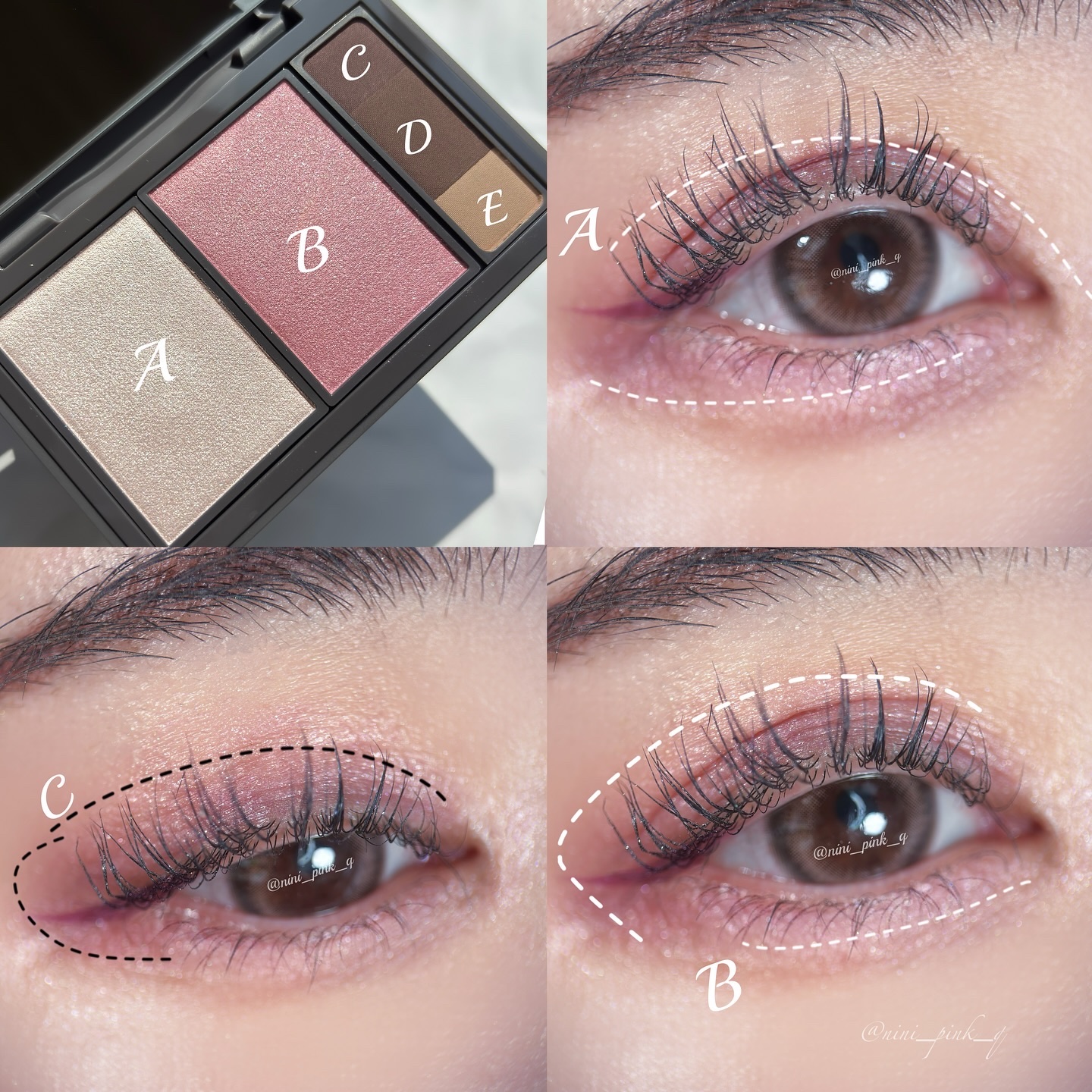 10 in flowはまさに夜桜パレット 深い夜空の月明かりで反射した川に 淡い桜の花びらが浮かんでるような。 儚くてエモい雰囲気。 ピンクのくすみがそこまで強くないから 意外と沈みにくいパレット。