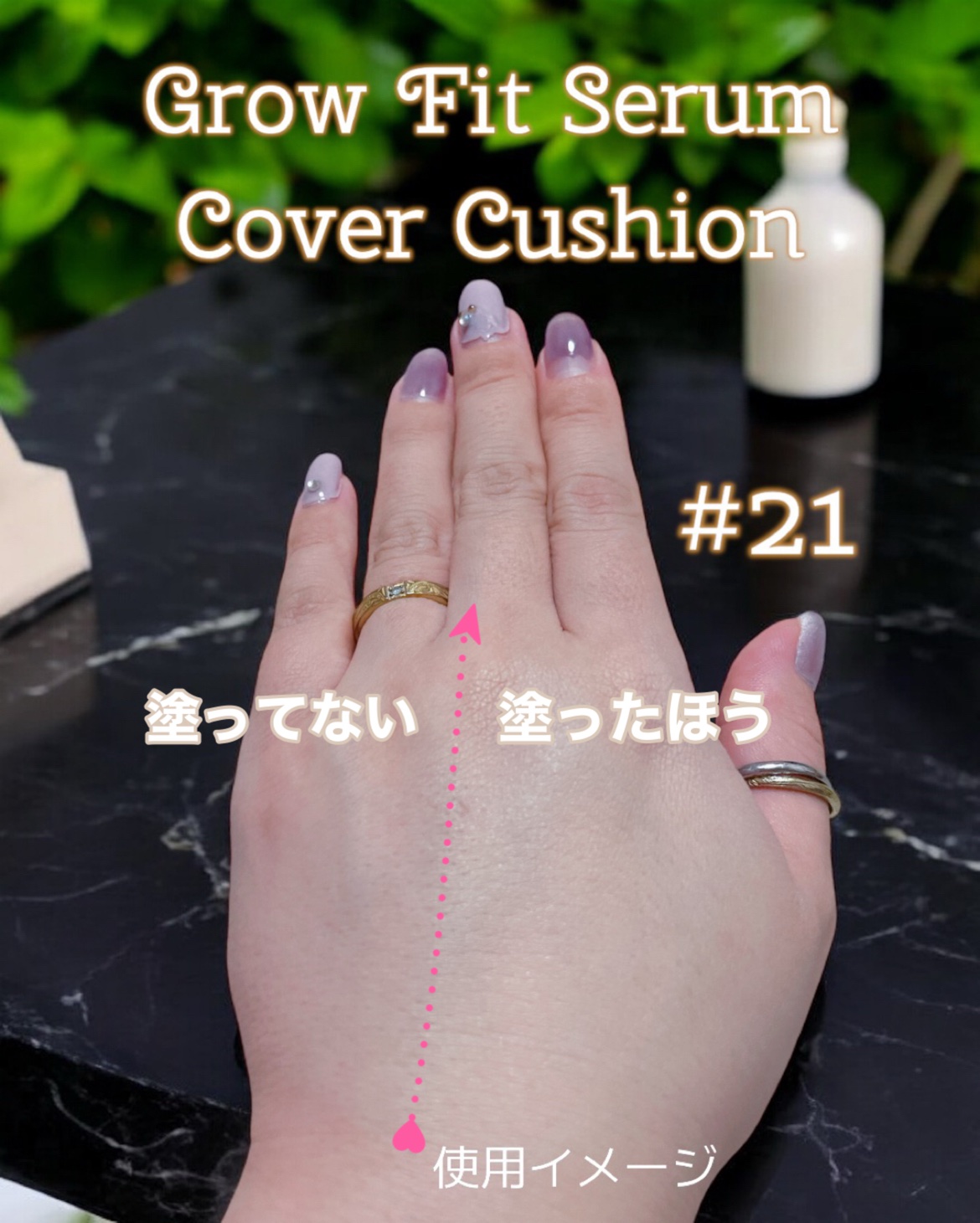 - <21 アイボリー> 水、酸化チタン、酸化亜鉛、ホモサレート、シクロペンタシロキサン、ジメチコン、BG、サリチル酸エチルヘキシル、フェニルトリメチコン、ジヘプタン酸ネオペンチルグリコール、グリセリン、ヘキサ脂肪酸(C5-9)ジペンタエリスリチルエステルズ、安息香酸アルキル(C12-15)、ナイアシンアミド、ポリカプリリルシルセスキオキサン、ラウリルPEG-9ポリジメチルシロキシエチルジメチコン、硫酸Mg、ラウリルポリグリセリル-3ポリジメチルシロキシエチルジメチコン、(アクリレーツ/アクリル酸ステアリル/メタクリル酸ジメチコン)コポリマー、マイカ、水酸化Al、ジステアルジモニウムヘクトライト、ステアリン酸、ラウロイルリシン、カプリル酸グリセリル、カプリリルグリコール、アルキル(C30-45)ジメチルシリルポリプロピルシルセスキオキサン、トリエトキシカプリリルシラン、シリカ、(ジメチコン/ビニルジメチコン)クロスポリマー、香料、エチルヘキシルグリセリン、アルミナ、アデノシン、月見草油、アボカド油、オリーブ果実油、ツバキ種子油、マカデミア種子油、ヒポファエラムノイデス果実油、ダイズ油、ヒマワリ種子油、トコフェロール、1,2-ヘキサンジオール、ツベルマグナツムエキス、ツボクサエキス、加水分解ヒアルロン酸Na、ヒアルロン酸ジメチルシラノール、加水分解ヒアルロン酸、ヒアルロン酸Na、ヒアルロン酸K、ヒアルロン酸、ヒアルロン酸ヒドロキシプロピルトリモニウム、ヒアルロン酸クロスポリマーNa、ヒアルロン酸ジメチルシラノールNa、アセチルヒアルロン酸Na、酸化鉄、リナロール、ヘキシルシンナマル、リモネン <23 ミディアムベージュ> 水、酸化チタン、酸化亜鉛、ホモサレート、シクロペンタシロキサン、ジメチコン、BG、サリチル酸エチルヘキシル、フェニルトリメチコン、ジヘプタン酸ネオペンチルグリコール、グリセリン、ヘキサ脂肪酸(C5-9)ジペンタエリスリチルエステルズ、安息香酸アルキル(C12-15)、ナイアシンアミド、ポリカプリリルシルセスキオキサン、ラウリルPEG-9ポリジメチルシロキシエチルジメチコン、硫酸Mg、ラウリルポリグリセリル-3ポリジメチルシロキシエチルジメチコン、(アクリレーツ/アクリル酸ステアリル/メタクリル酸ジメチコン)コポリマー、マイカ、水酸化Al、ジステアルジモニウムヘクトライト、ステアリン酸、ラウロイルリシン、カプリル酸グリセリル、カプリリルグリコール、アルキル(C30-45)ジメチルシリルポリプロピルシルセスキオキサン、トリエトキシカプリリルシラン、シリカ、(ジメチコン/ビニルジメチコン)クロスポリマー、香料、エチルヘキシルグリセリン、アルミナ、アデノシン、月見草油、アボカド油、オリーブ果実油、ツバキ種子油、マカデミア種子油、ヒポファエラムノイデス果実油、ダイズ油、ヒマワリ種子油、トコフェロール、1,2-ヘキサンジオール、ツベルマグナツムエキス、ツボクサエキス、加水分解ヒアルロン酸Na、ヒアルロン酸ジメチルシラノール、加水分解ヒアルロン酸、ヒアルロン酸Na、ヒアルロン酸K、ヒアルロン酸、ヒアルロン酸ヒドロキシプロピルトリモニウム、ヒアルロン酸クロスポリマーNa、ヒアルロン酸ジメチルシラノールNa、アセチルヒアルロン酸Na、酸化鉄、リナロール、ヘキシルシンナマル、リモネン