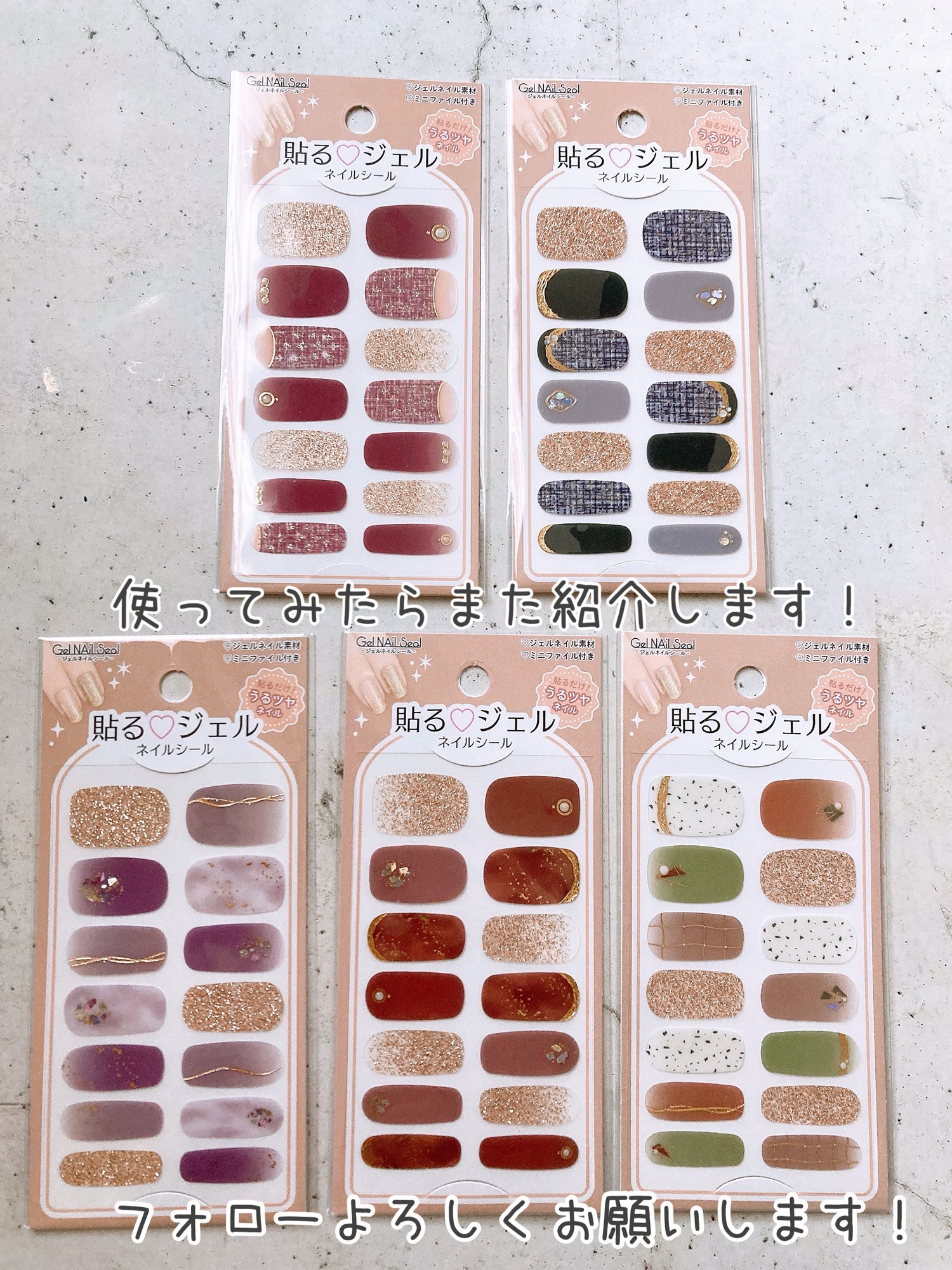 セリアのジェルネイルシール!110円でこのクオリティ本当にありがたいですよね🥺コーティングはしないとシール感めっちゃあるけど😂上手くいけば3週間ぐらいもってくれる!リペアするには枚数が少ないから長持ちしない体で使った方がいいと思いますが💦#n...