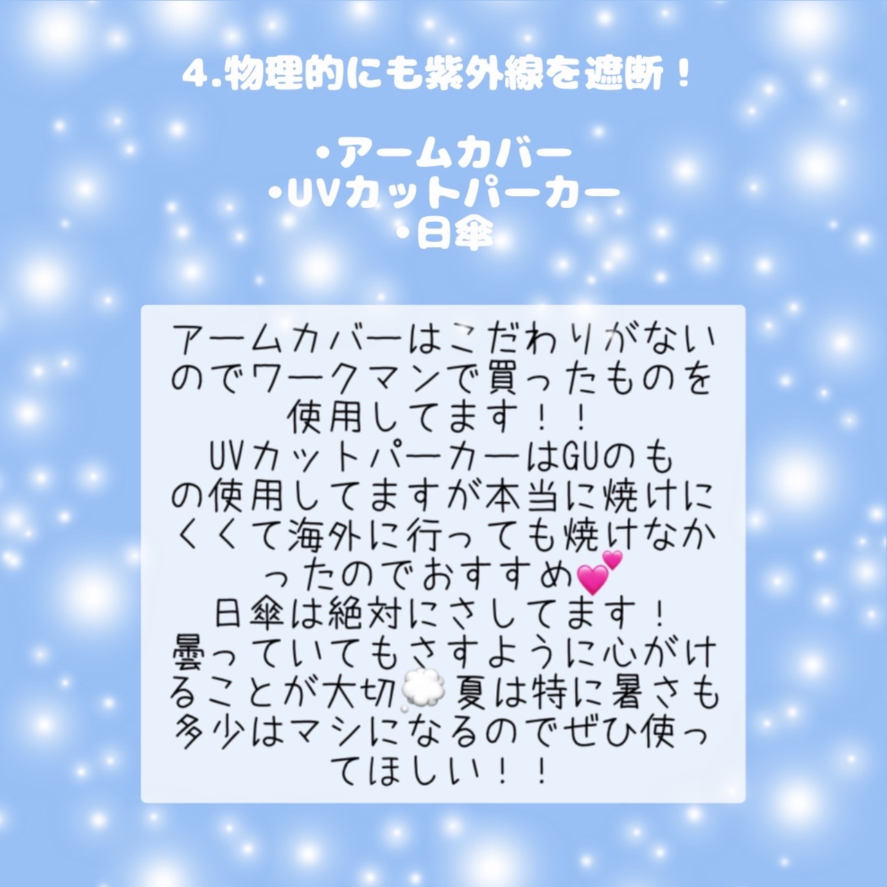 個人的おすすめはビオレUVアクアリッチライトアップエッセンス、顔→無印日焼け止めジェル。 オールシーズン使える日焼け止めが嬉しい🩷💭 この二つを毎日塗るようになってから色んな人に肌白いねって褒めてもらえるようになりました🫶🏻