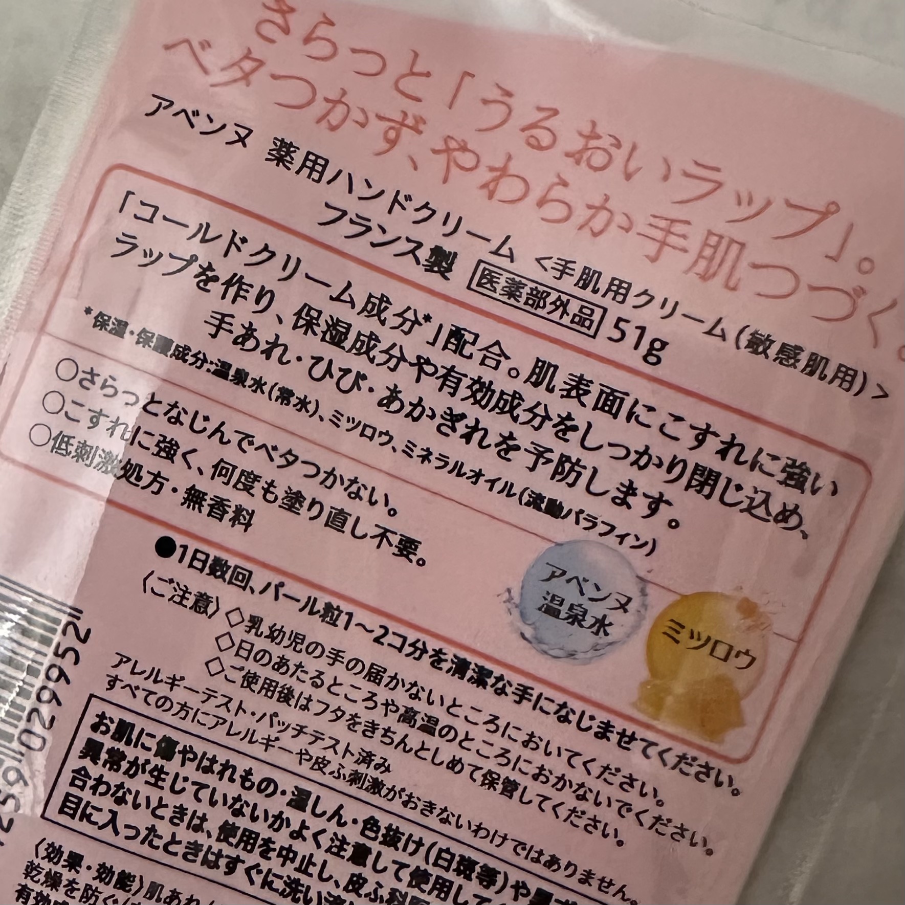 - アベンヌコールドクリーム成分配合で、保湿効果の高いクリームです。乾燥や外部刺激からしっかりまもり、使うほどあれにくい手肌に導きます。 なめらかに伸びて、ベタつかないから、スマホも、仕事も、水仕事もすぐOKです