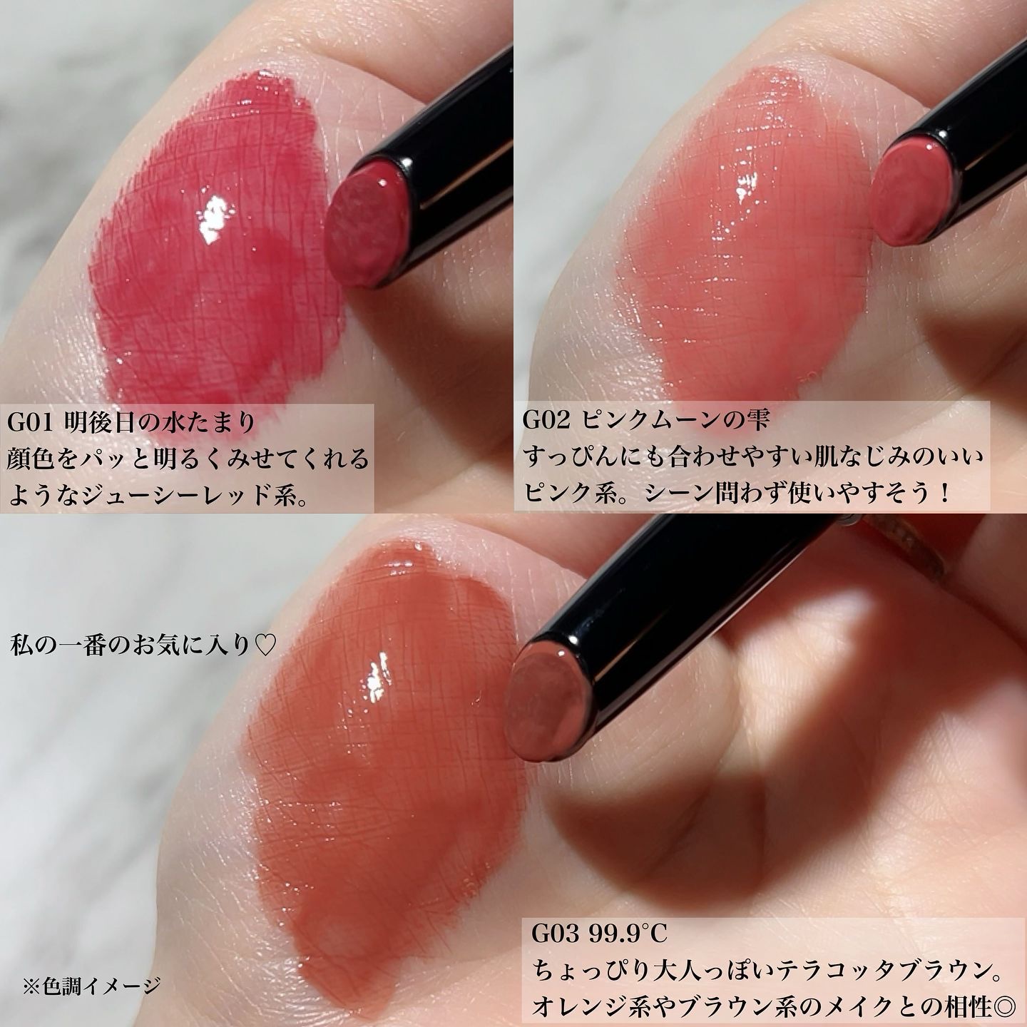 あの大人気リップモンスターから待望のツヤタイプが新発売👾 G03 99.9°C テラコッタブラウン系の全3色で、わたしはG03を購入! とにかくやわらかくてトロッとしていてつけるとうるツヤの唇に💋 今までのリップモンスターも好きだったけどこれから乾燥が気になる冬やぷるっぷるにしたいときにはぴったり❤︎ すごくよかったんだけど注意点がいくつかあって ・柔らかいから強く押すと崩れる ・するする塗れるけど減りが早そう ・一度繰り出すと戻せない
