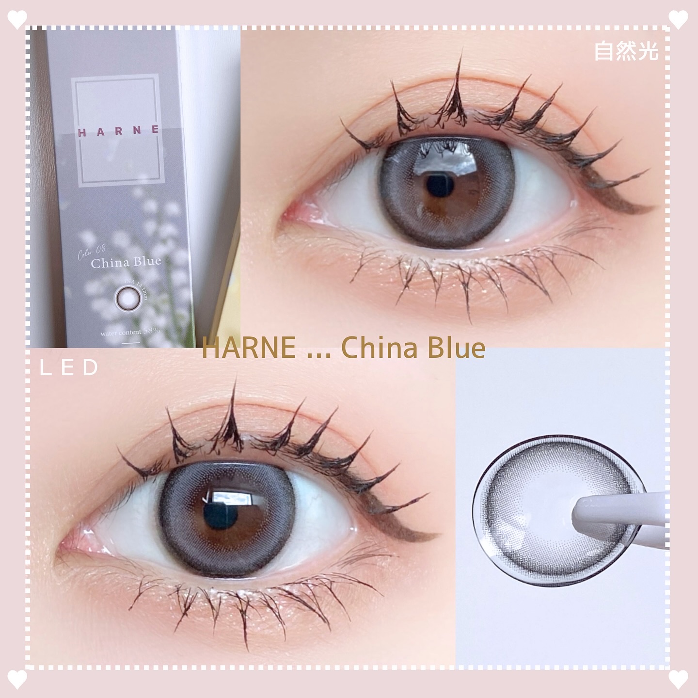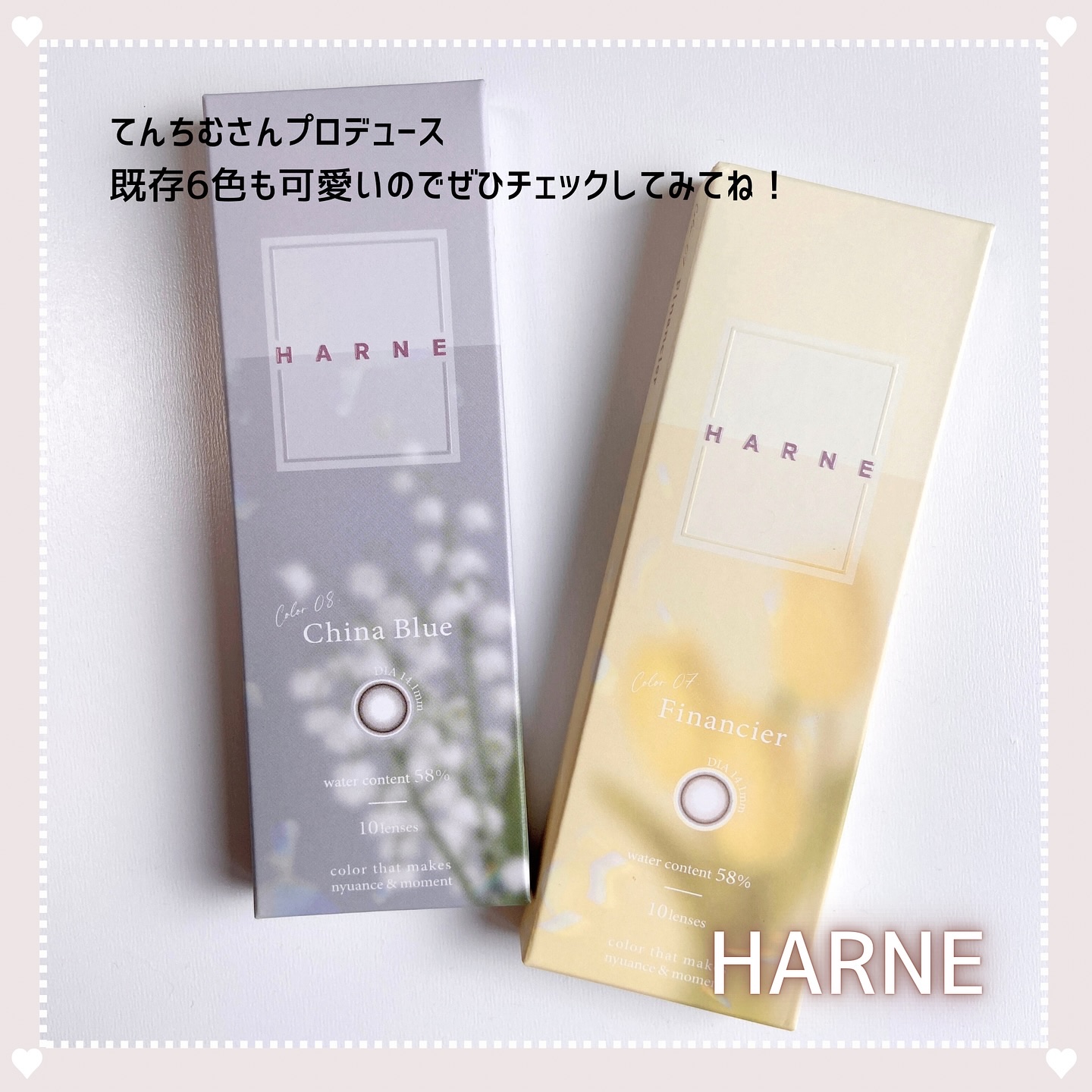 HARNE新色としてマカロンの色違いカラー フィナンシェ&チャイナブルーが登場したよ🪽 てんちむちゃんのこだわりポイントはズバリ色!浮いたり馴染みが悪くならないように色素薄い色を狙いすぎない程よいうっすらベージュ✨ 黒目がつけても派手見えしない絶妙なニュアンスブルーが綺麗すぎる💎