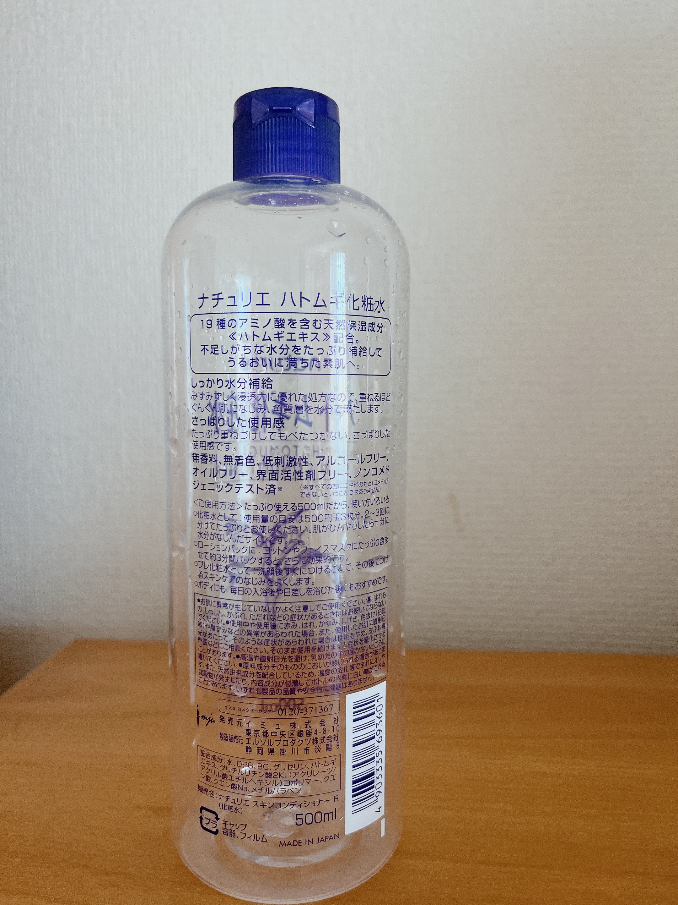 - <通常サイズ 500ml> 水、DPG、BG、グリセリン、ハトムギエキス、グリチルリチン酸2K、(スチレン/VP)コポリマー、クエン酸、クエン酸Na、メチルパラベン <500ml+ 限定ムーミンデザインボトル> 水、DPG、BG、グリセリン、ハトムギエキス、グリチルリチン酸2K、(スチレン/VP)コポリマー、クエン酸、クエン酸Na、メチルパラベン <詰め替えタイプ 480ml> 水、DPG、BG、グリセリン、ハトムギエキス、グリチルリチン酸2K、(スチレン/VP)コポリマー、クエン酸、クエン酸Na、メチルパラベン <旧製品> BG、グリセリン、メチルパラベン、エタノール、グリチルリチン酸2K、ハトムギエキス、DPG、クエン酸Na、プロピルパラベン、クエン酸、(スチレン/アクリレーツ)コポリマー、水 <限定ムーミンデザイン> 水、DPG、BG、グリセリン、ハトムギエキス、グリチルリチン酸2K、(スチレン/VP)コポリマー、クエン酸、クエン酸Na、メチルパラベン