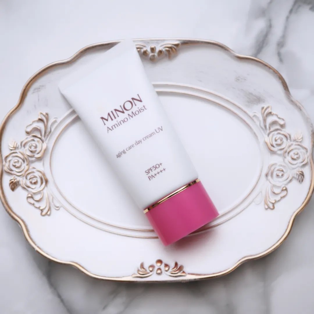 - 【シワ改善もできるUVクリーム】 SPF50+PA++++ シワ改善×UVカットが出来る薬用シワ改善UVクリーム。これ1本で美容クリーム・UVカット・化粧下地の3役。 シワ改善&しみ*予防成分「ナイアシンアミド」、肌あれ予防成分「グリチルリチン酸2K」配合。紫外線吸収剤&酸化亜鉛フリーで敏感肌を考えた処方。自然な輝きを放つ、やわらかなテクスチャーの化粧下地、見る角度で反射色が変わる「艶肌ダブルカラーパウダー」配合で自然な立体感を演出。 エイジングケア:年齢に応じたお手入れケア *メラニンの生成を抑え、しみ・そばかすを防ぐ (販売名:ミノンアミノモイストAU)【医薬部外品】