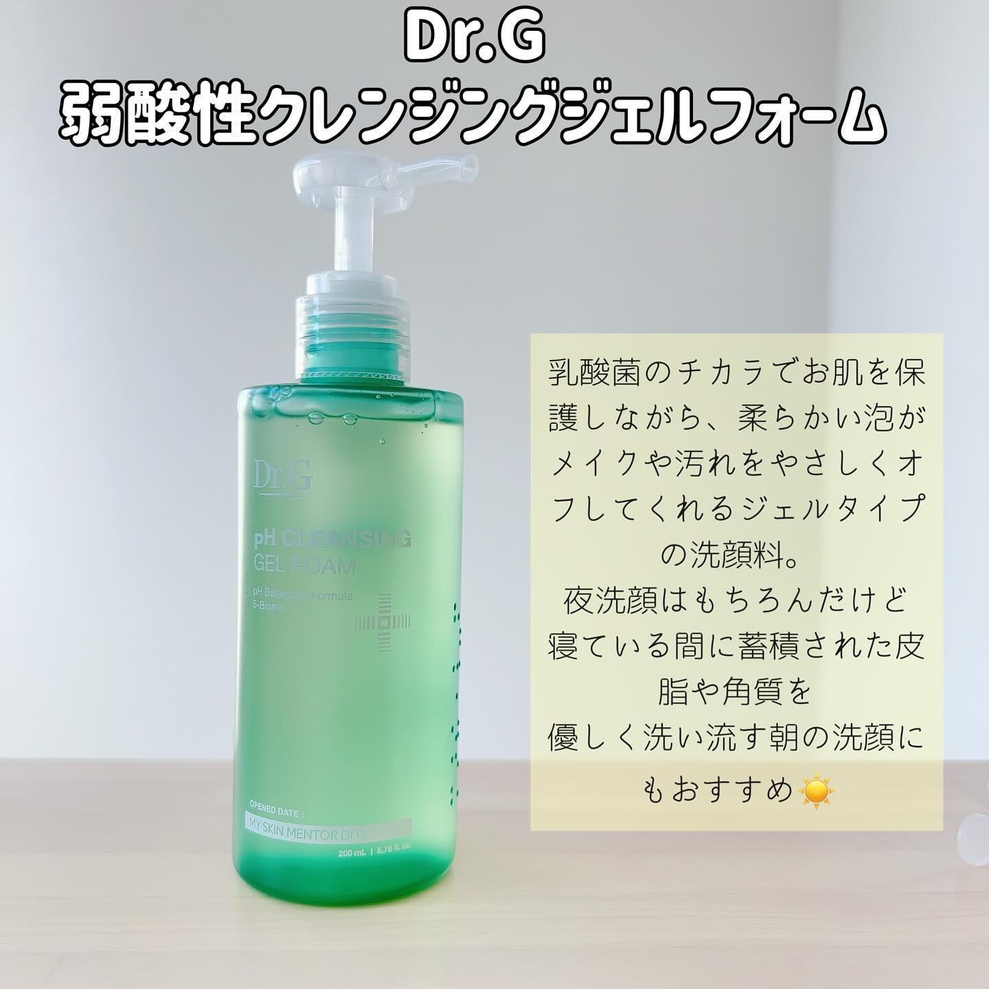 朝の洗顔におすすめDrG(ドクタージー)「弱酸性クレンジングジェルフォーム」ジェルタイプの洗顔料です。ポンプタイプです。さっと使えるのが便利で、忙しい朝にも嬉しいです。クリアボトルなので、残量が分かりやすいのもいいね。とろっとしたジェルのテク...