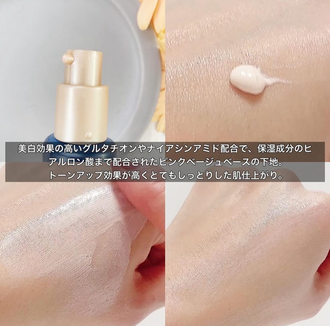 - SPF50+ PA++++ グルタチオン*やナイアシンアミド*が入った、スキンケア効果の高い、化粧下地としても使える日焼け止めです。 さらに、ヒアルロン酸*も入っているので、水分ケアまで可能!冬場でも、長時間乾燥が気になりにくい! スキンケアで肌を潤わしながら、日焼け対策もでき、化粧下地としてベースを整えてくれます。 しっとりとしたテクスチャーですが、仕上がりはベタっとせず、肌の角質層を潤わせるので、メイクの密着力を高め、長時間潤いを感じます。 ほんのりピンクがかった色で、肌に高級感と多幸感を演出してくれます。 *整肌成分