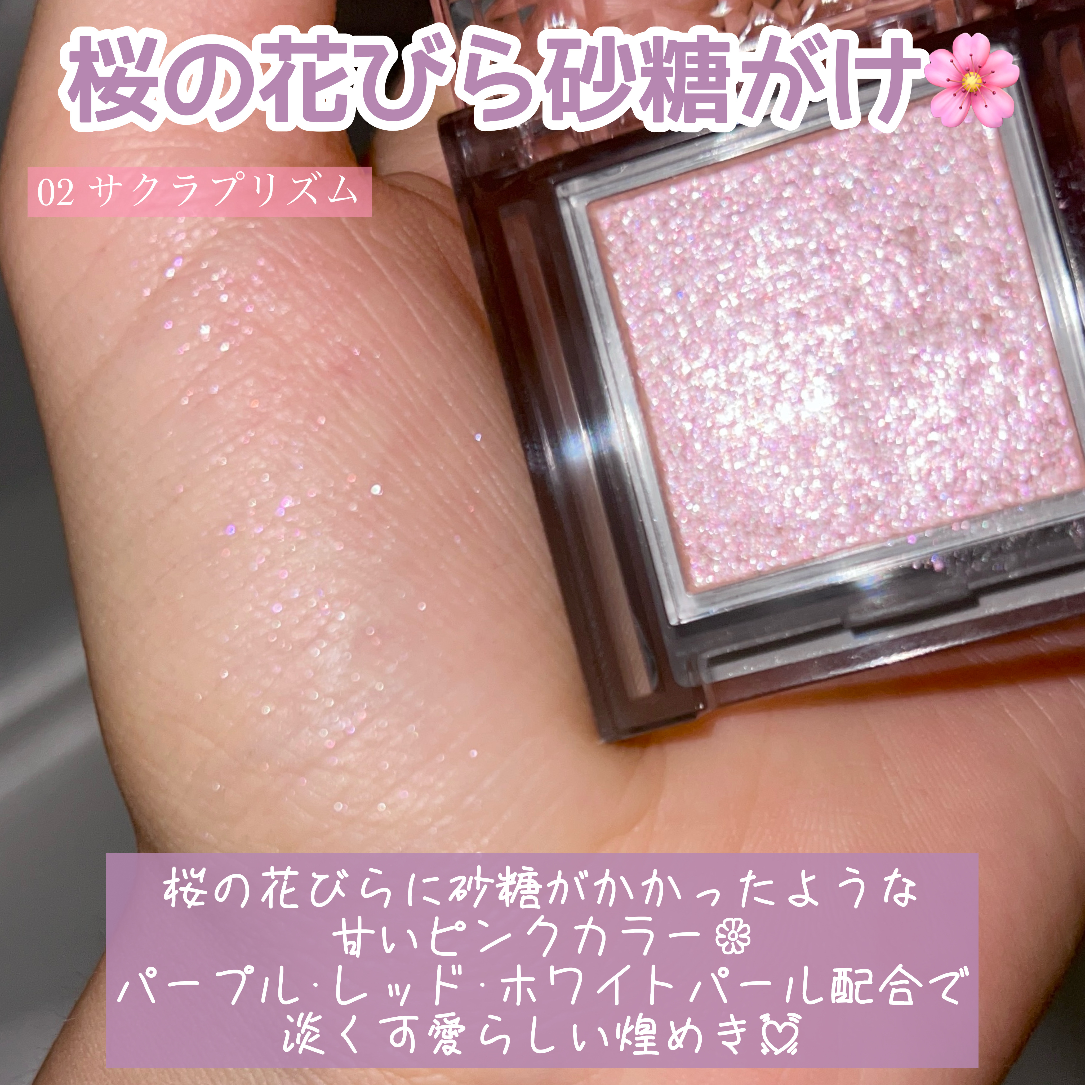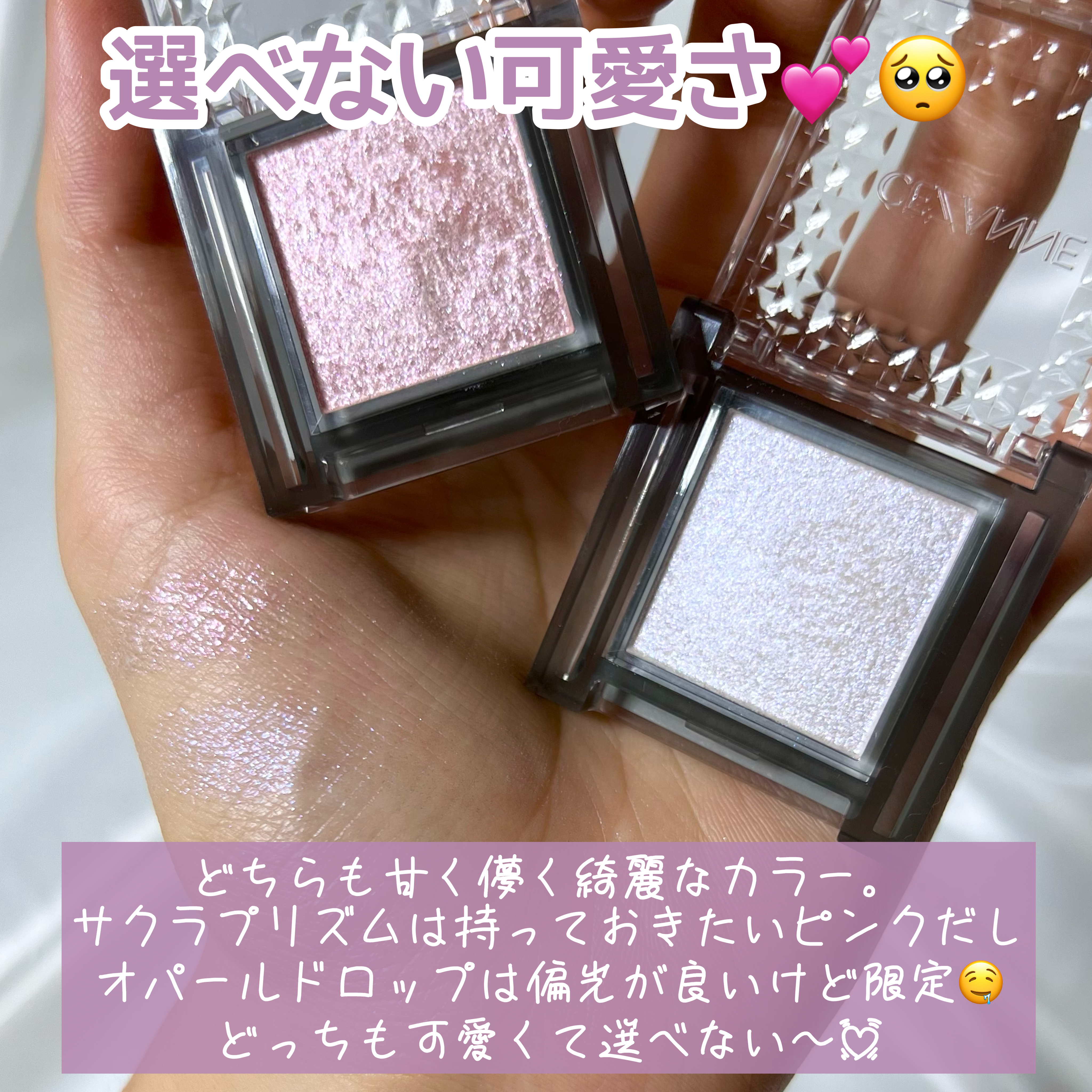 高密着うるみラメ×高彩度ラメシャドウ🥹✨CEZANNEのシングルシャイニーアイシャドウ3色をスウォッチ🌸CEZANNEセザンヌシングルシャイニーアイシャドウ01ムーンジェム/02サクラプリズム/SP1オパールドロップメイクはSP1のオパールド...