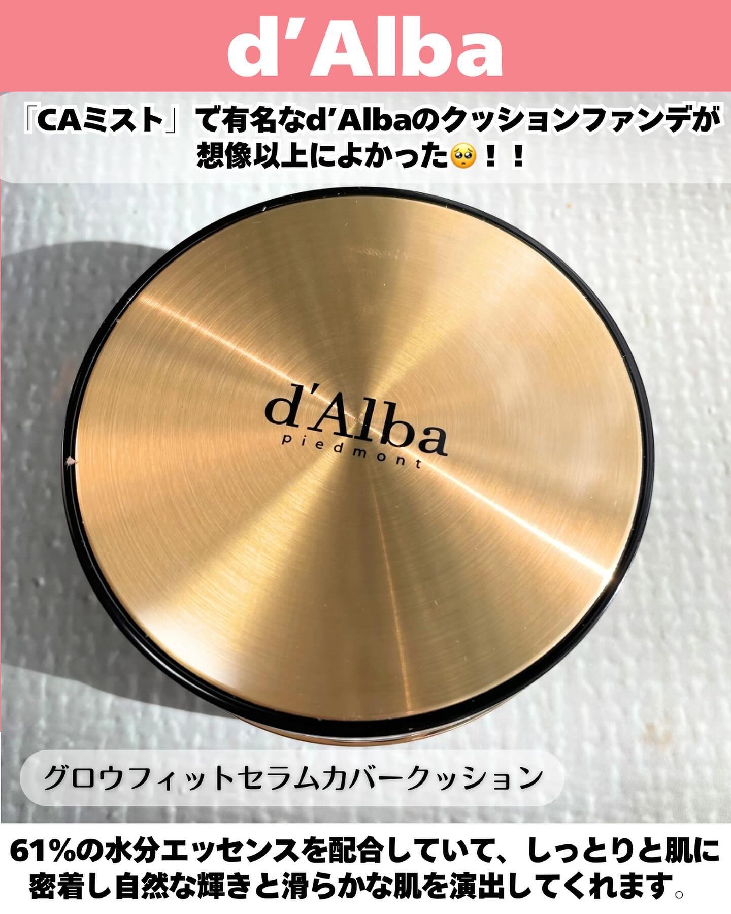 𖤐´-dAlbaGLOWFITSERUMCOVERCUSHION内容量:15gUsedcolor:21号紫外線遮断効果:SPF50+PA++++61%の水分エッセンスを配合⭐️しっとりと肌に密着し、毛穴を目立たなくしてくれツヤ肌を演出してくれ...