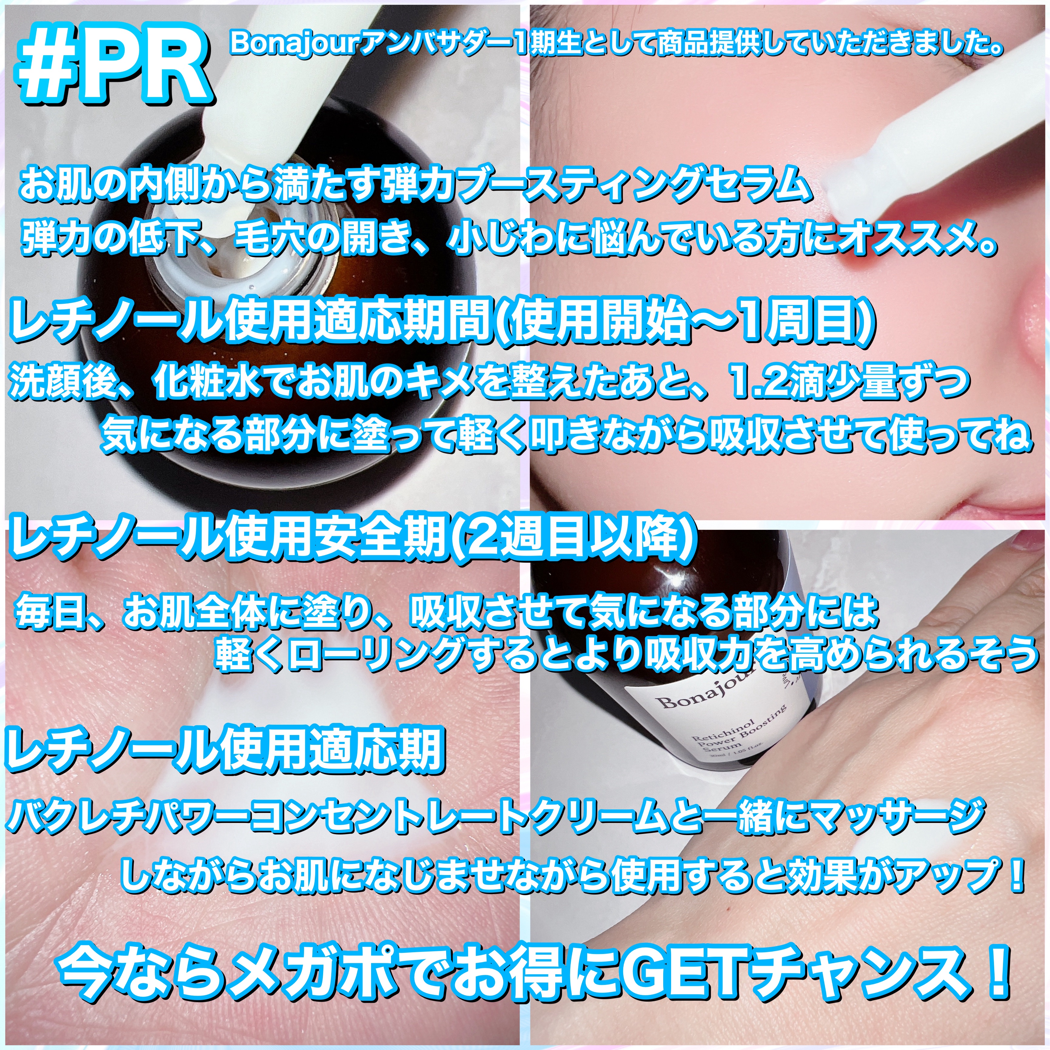 敏感肌さんに「バクレチ」美容液でハリケアを! 気になるシワ、乾燥毛穴に「純レチノール +バクチオール」でやさしく&しっかり、大人肌ケア! 韓国のヴィーガンスキンケアの先駆者的ブランド、ボナジュール。 敏感肌の方のために、自然由来成分にこだわっているのだそう。 肌刺激に配慮し、純レチノールはリポソーム化。 バクチオールは植物性のレチノール類似成分で、穏やかにゆっくりと肌に作用するため、敏感肌の人でもトライしやすいのだそう。