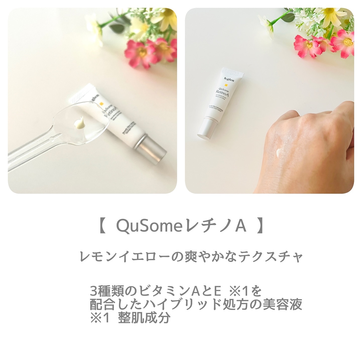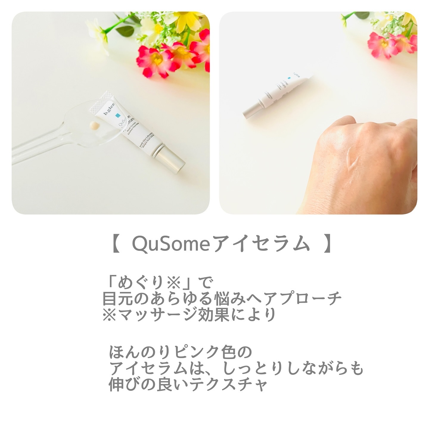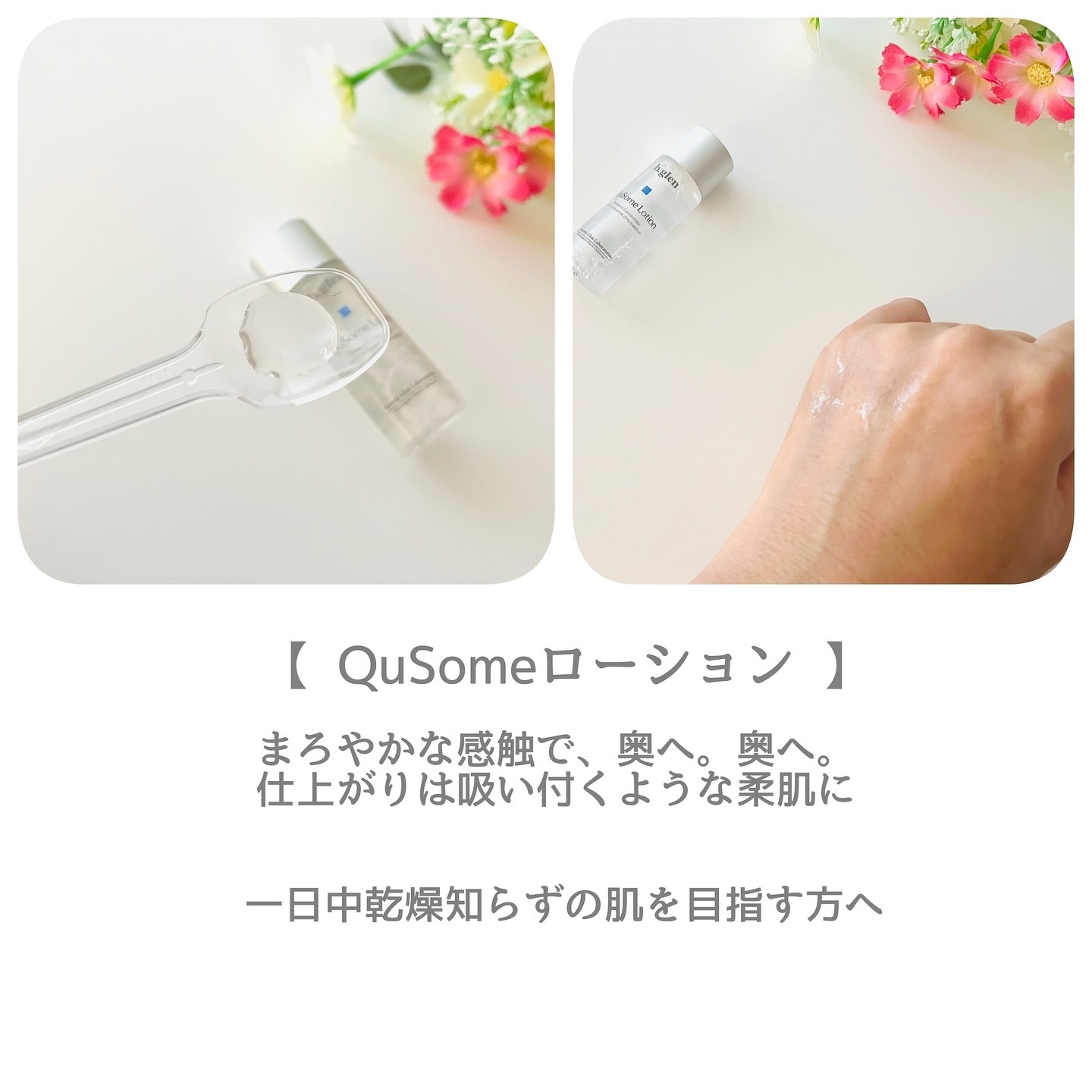 - 加齢とともに深く刻まれた年齢ラインに必要なのは、角質層からじっくりと働きかけるケア。 角層内深部に水分と美容成分を与える「肌の底上げ効果」によって、押し上がるような、ふっくらとしたハリを与えます 。さらに見た目年齢を大きく左右する目元には、専用美容液で小じわまで目立ちにくくします*。 *乾燥による小じわを目立たなくする [効能評価試験済み] クレイウォッシュ (25g)/QuSomeローション (12mL)/Cセラム (5mL)/QuSomeレチノA (5g)/QuSomeアイセラム (3g)/QuSomeモイスチャーリッチクリーム (7g)