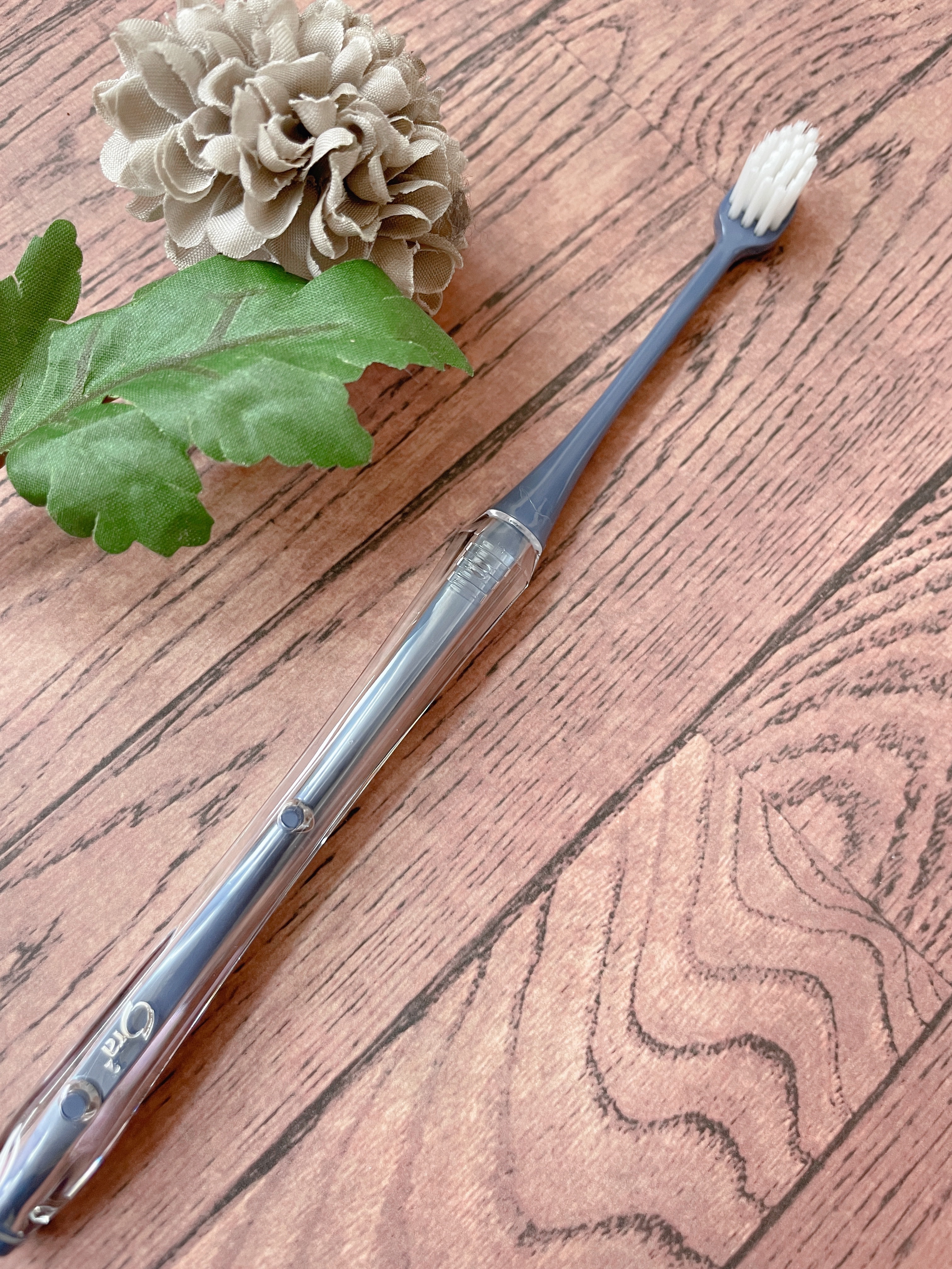 先端2.5mmのオーラツー史上最薄ヘッドで磨き残しを防いでくれる優秀歯ブラシ🪥 程よい密度の毛がなめらかにフィットして、ツルツルの磨き上がりに! トレンドのくすみカラーとクリアハンドルのデザインもお洒落で、使う度気分が上がります。