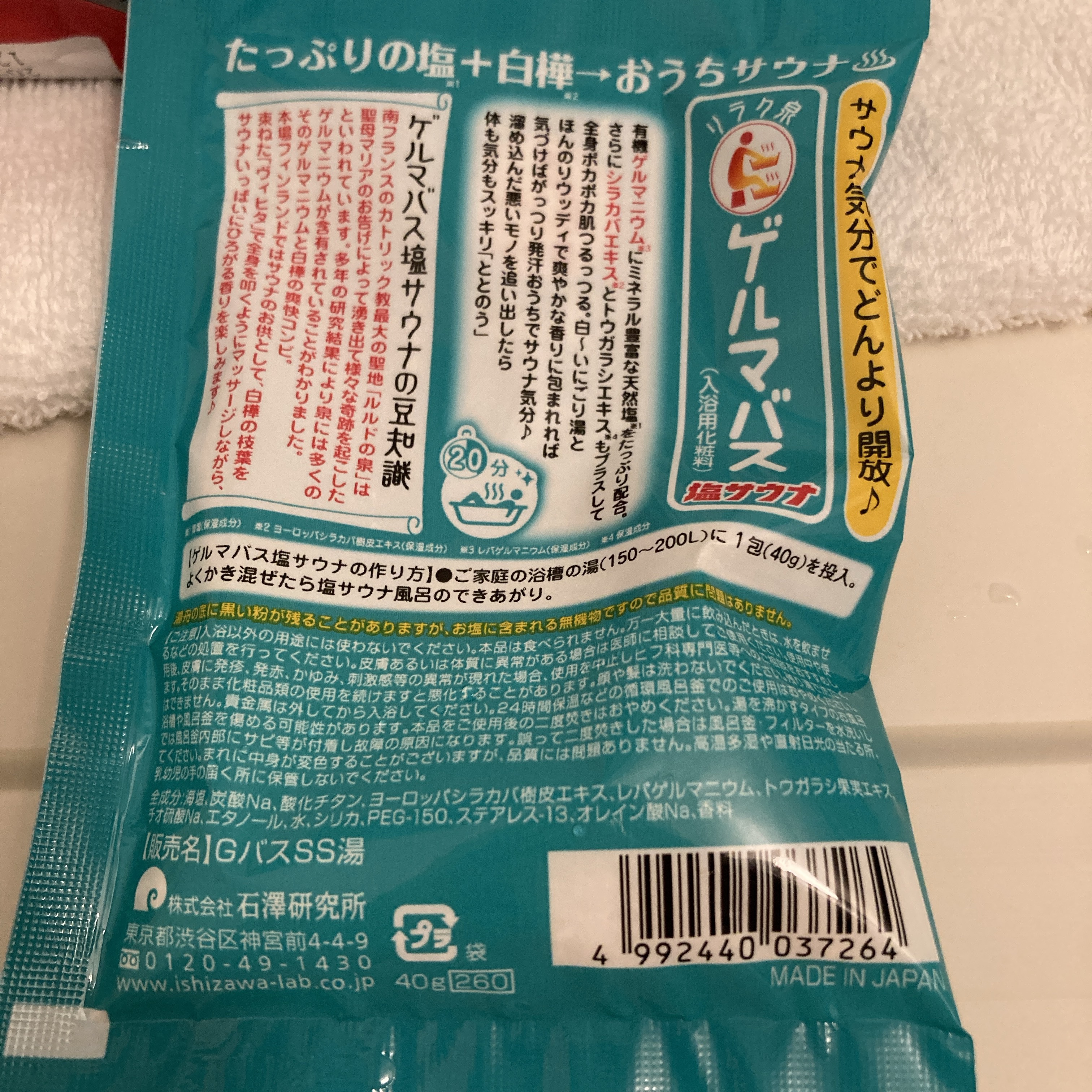 リラク泉 ゲルマ塩風呂は有機ゲルマニウムとた〜っぷりお塩が入ったお風呂で、体の隅々まで大掃除。イオウの香り立つお湯は肌触りがなめらかで、さながら温泉気分。 リラク泉 ゲルマバス黒湯は有機ゲルマニウムにミネラルを含んだ死海の泥を配合。お肌引き締め成分の天然塩とトウガラシエキスもプラス。 ぽかぽかとあたたまって気持ちの良いお風呂に!まるで温泉のような香りもして贅沢な気分。特に気に入ったのはゲルマバス白湯とゲルマバス塩サウナです。