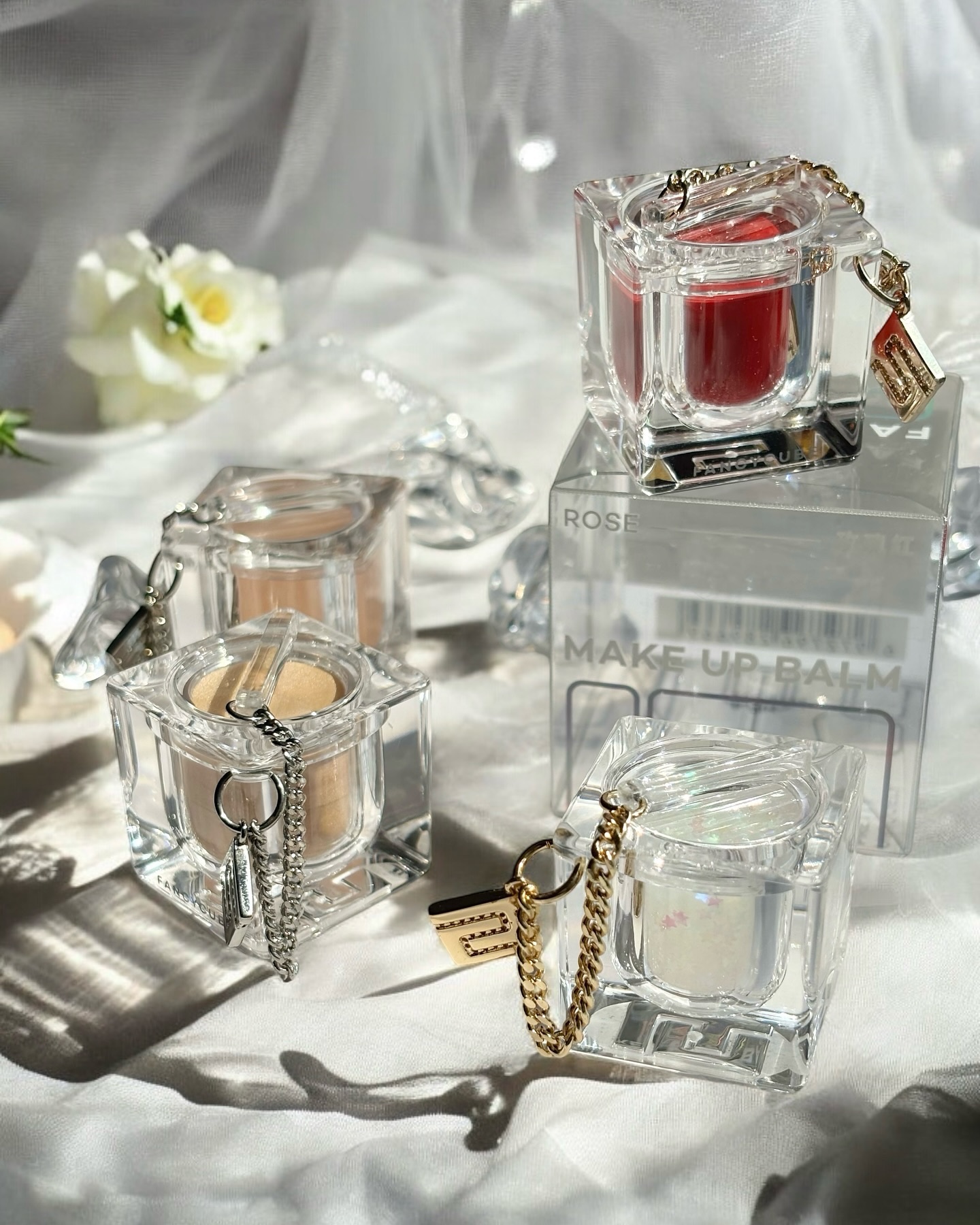 アクセサリーみたいなマルチバーム🎀FANCYCUBE🎀〜cherryblossom〜#PRリップ、チーク、アイメイクにも♡セミマットで高発色薄くつけたら繊細で柔らかい色付きバックにつけたりチェーンに通してアクセサリー感覚でアレンジ自在かわいす...