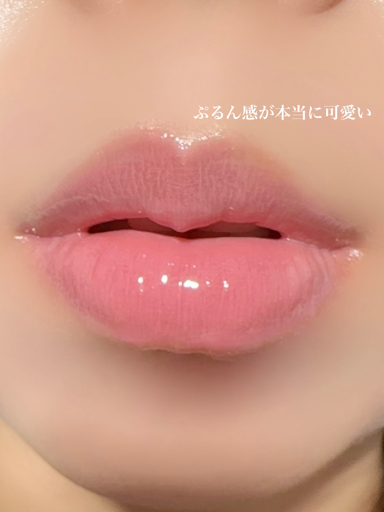 ねっちょりボリューム感あるテクスチャーだけど、ベタつきなく使いやすい。 ティントじゃない普通のグロスだから色もちは良くない。 発色ナチュラルだからこれだけでもいいけど、他のリップと合わせても可愛い!!