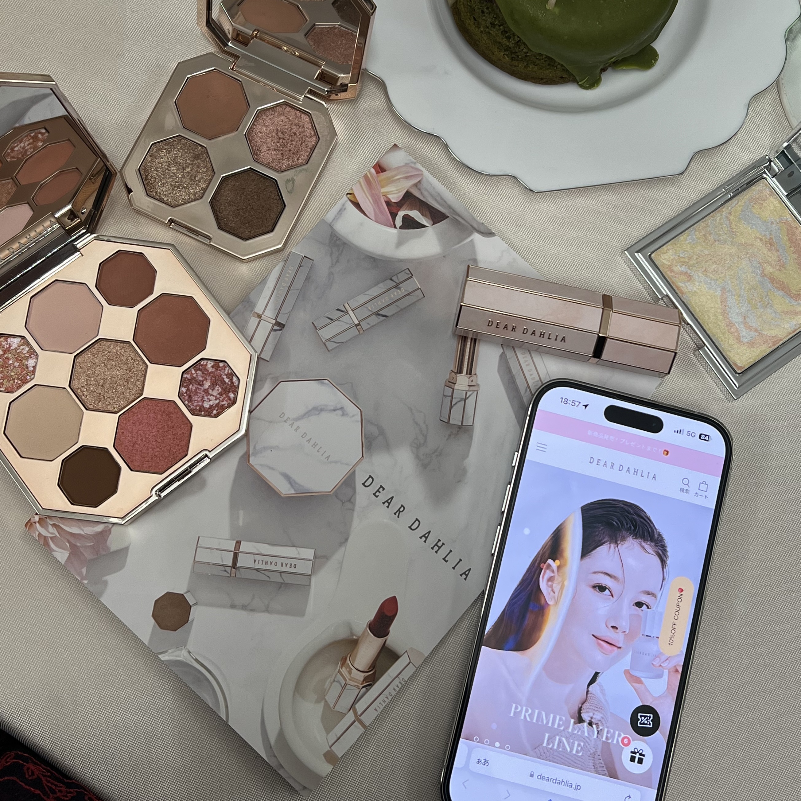 大理石コスメの濡れツヤハイライト◆DEARDAHLIA◻︎スキンルミナスハイライター◻︎ブリスベージュBLISSBEIGE◻︎¥3,190※香りなしパウダータイプでサラッとしてますが粉飛びしにくい印象です☻ラメの輝きというよりは濡れツヤっぽく...