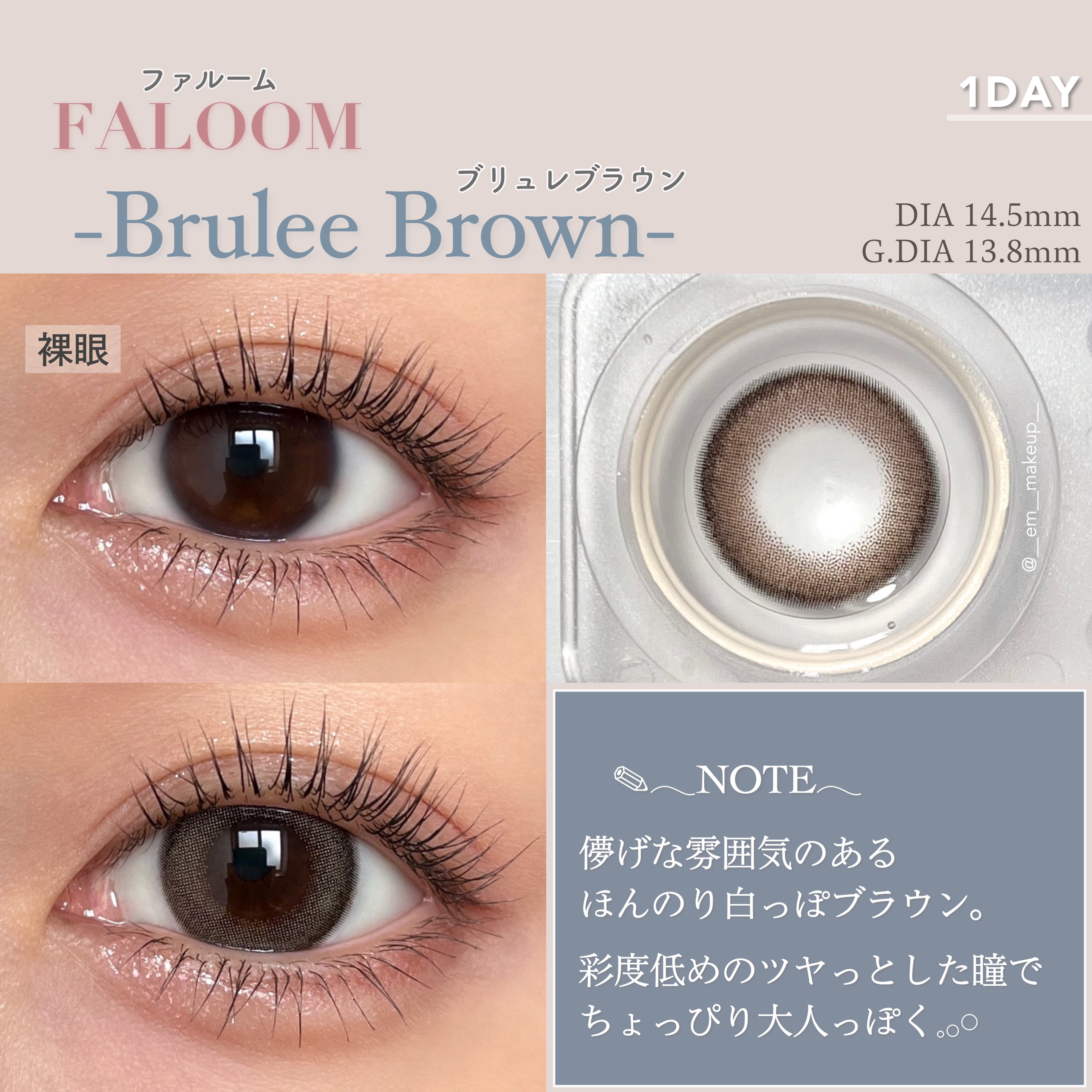 矢吹奈子さんがプロデュース&イメージモデルの FALOOM(ファルーム) 🤎わたしにハマる盛れ発色ブラウン🤎 ニュアンスブラウンカラーが瞳を自然にトーンアップしてくれる裸眼アップデート系レンズ🤎 まろやかベージュブラウン×ぼかしプチデザインで、明るく優しい気な瞳を演出してくれる🤎