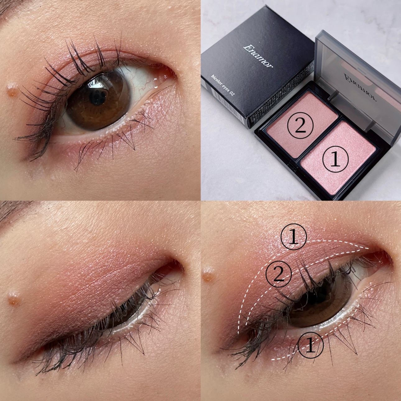かじえりさんの計算し尽くされた発色や質感、色の組み合わせで簡単にかわいくなれる逸品です🥰 使い方は濃いカラーを指やブラシで乗せた上に、繊細パールカラーを重ねるだけ♡簡単すぎて10秒でできちゃいます。 手のひらに収まるこの絶妙なサイズ感♡捨て色なしで大満足なアイシャドウです♪