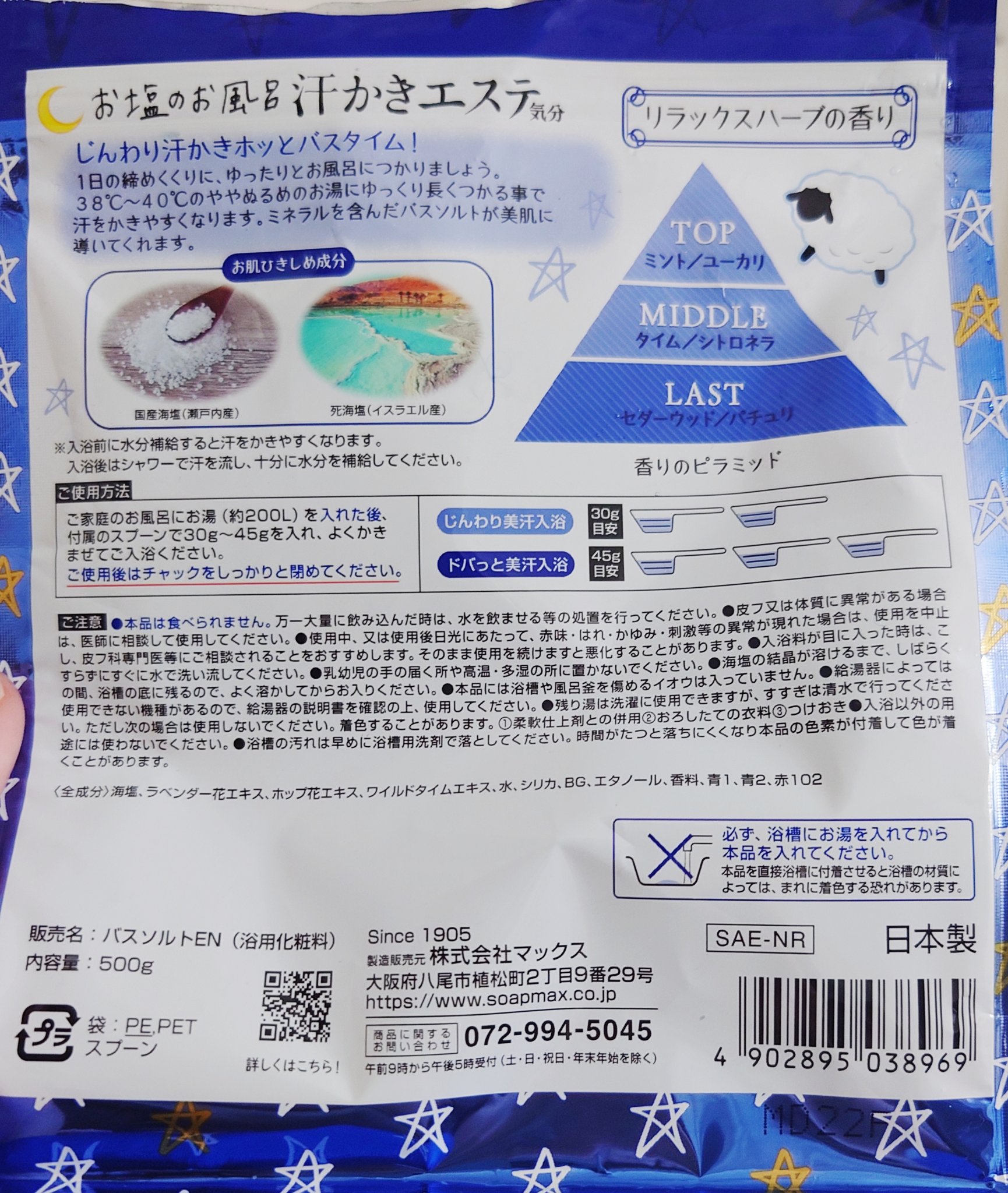 商品詳細情報マックス 汗かきエステ気分 リラックスナイト