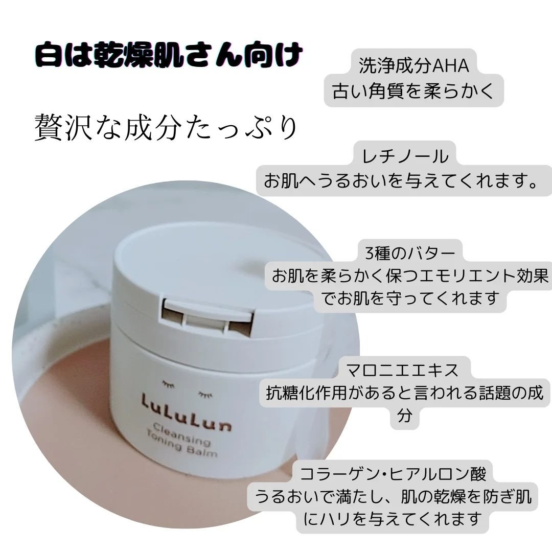 リニューアルしたルルルンのクレンジングバームをお試ししてみました!なめらかなとろけ具合が増したような💡 AHAでクレンジングするタイプで乾燥が気になるお肌のくすみをしっとり落としてくれるとか 成分構成が魅力的すぎる🥺 4種あって気になるお肌悩みや好きな成分で選べるところもいいよね…❤️🔥
