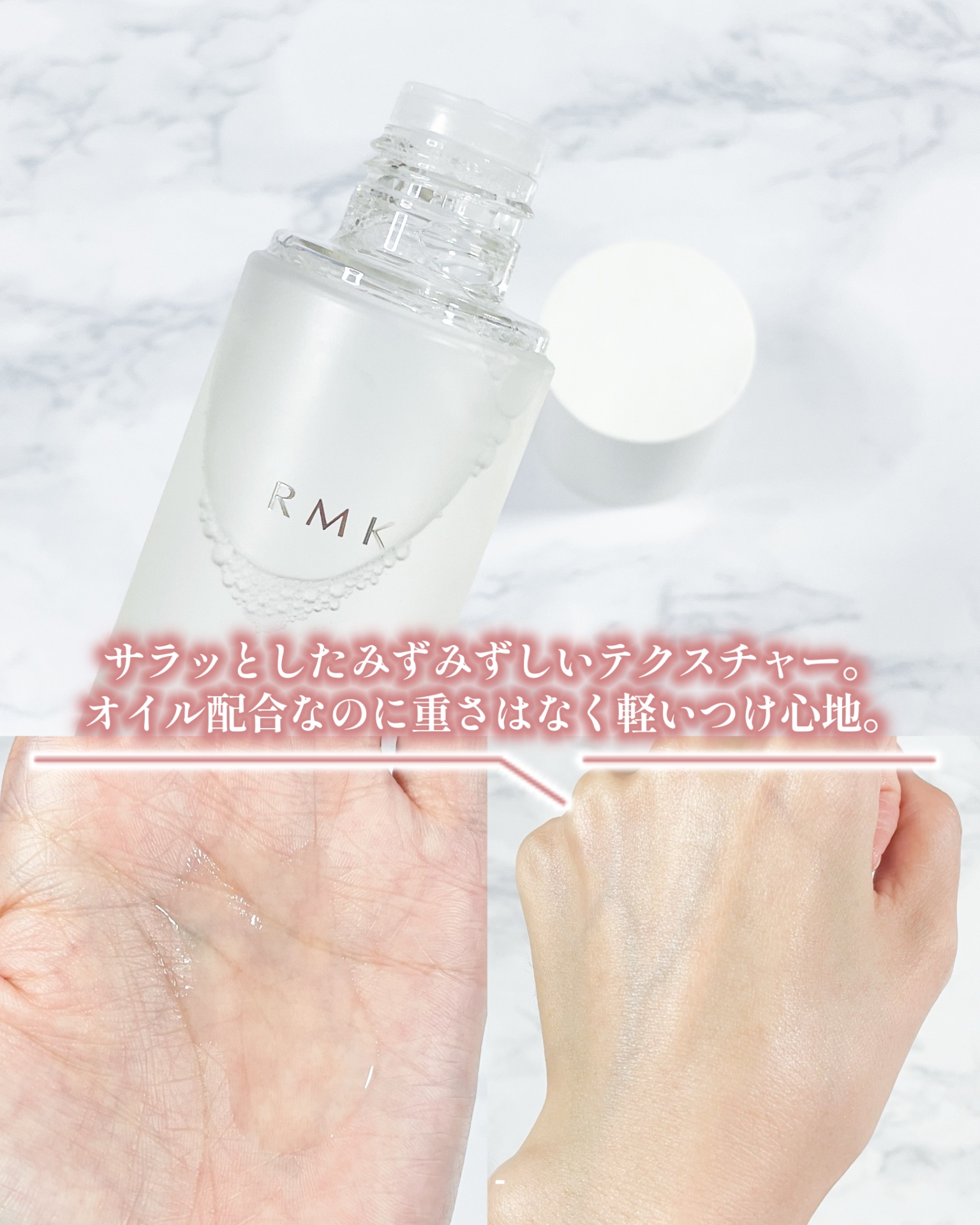 乾燥によるごわつき・かさつきのないふっくらとやわらかくつややかな素肌に🫶🏻 軽くてみずみずしいテクスチャー。"オイル"ケアローションとのことでベタつかないか心配していましたが、ベタつきなくお肌にスっと馴染んでくれます。 毎日使用することで、メイクの土台である肌を美しく、印象の決め手となるキメ・ツヤ・弾力のあるハリへアプローチし、ふっくらとやわらかく、つややかな素肌へと導いてくれるんだって!✨️