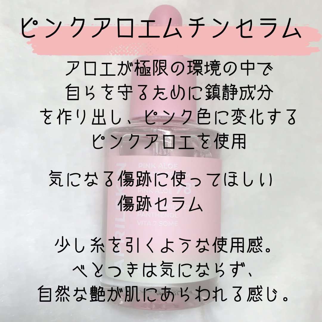トラブル肌のためにつくられた、さっぱりとした使用感のトナー&セラム✨ 高い鎮静効果が期待されているピンクアロエを高配合!肌荒れや肌がゆらぐ時期のケアにおすすめです🫶 さっぱりとみずみずしいテクスチャーのトナー。付属の細いノズルのキャップに付け替えると、肌に直接使うことが出来てより吸収力が高まるんだとか! 肌トラブルやトラブル跡をケアしながら、肌のバリア機能をサポートしてくれるセラム。伸びがよく肌にスっと馴染んでいく感覚💭ྀི