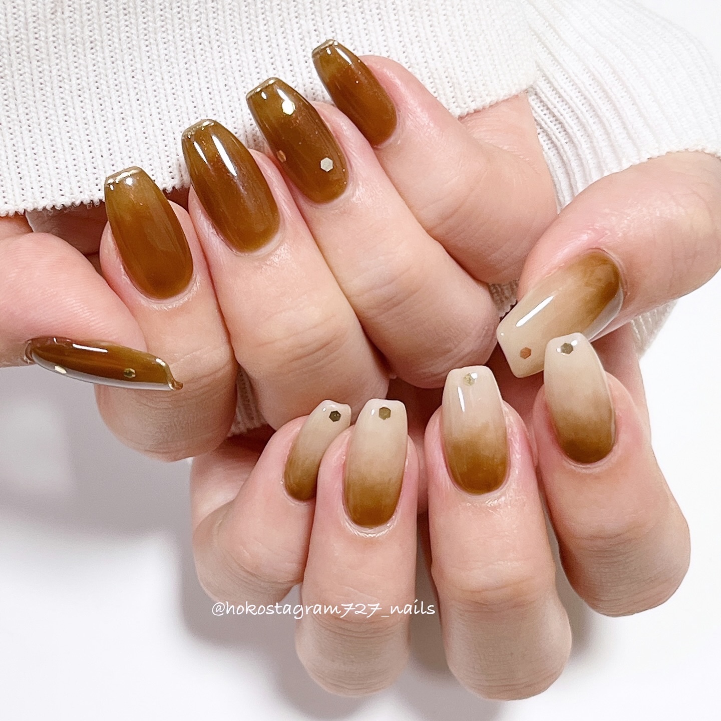 7月になったらしたかったとっておきのデザイン✨ ひまわりというと元気いっぱいな雰囲気になりがちだけど、ブラウンとの組み合わせが大人っぽくて使いやすいデザインでした😊 仕上がりは厚みがあってかなり本格的! さすがジェルネイルの人気メーカーさんが...