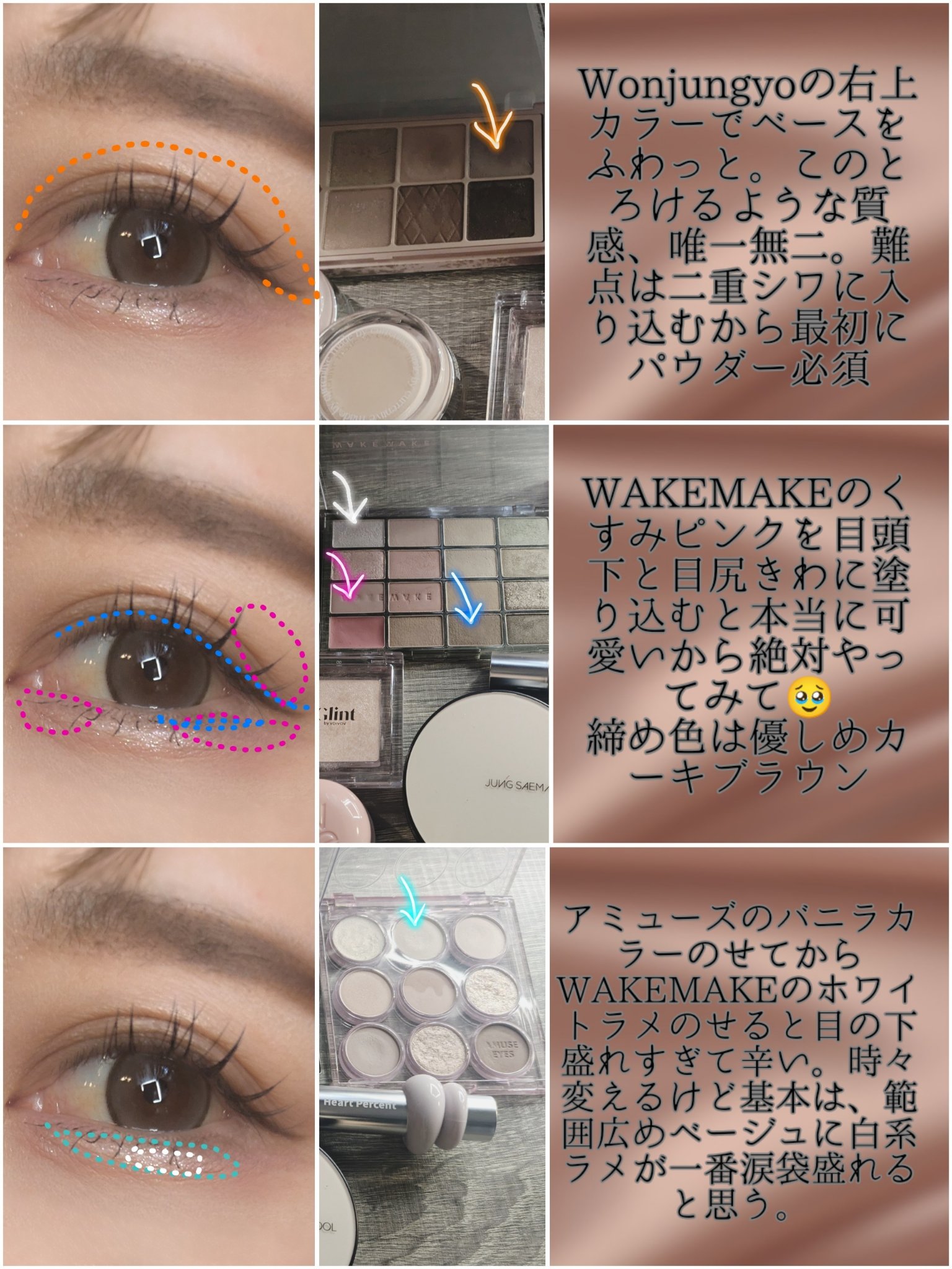 ずっと欲しかったWonjungyoのウォンジョンヨ W デイリームードアップパレット7月15日に購入♡ どのカラーも発色が綺麗✨️ マット、グリッター、シマーと3つの質感のシャドウが入ってて この淡さは嬉しかった❤️