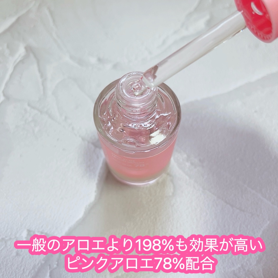 一般のアロエより197%も効果が高いピンクアロエを78%配合。肌トラブルをケアしながら肌バリア機能をサポートしてくれるセラムです。 とろみがあり糸を引くテクスチャー。つるんとした感触で伸びよく、肌なじみは早いと感じました。しっとり、べたつかない使い心地です😊 現在開催中のメガ割対象商品です✨気になった方はQoo10へ♪
