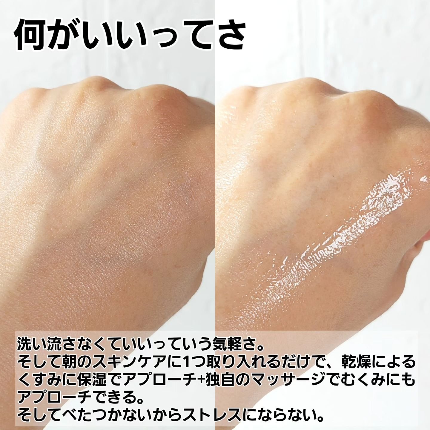 | 糸を引くくらい濃密で とろみのあるテクスチャー。 肌に膜がはったような密着感があり、 その後肌にすーっとなじんでベタつかない。 | 詳細を見る | |