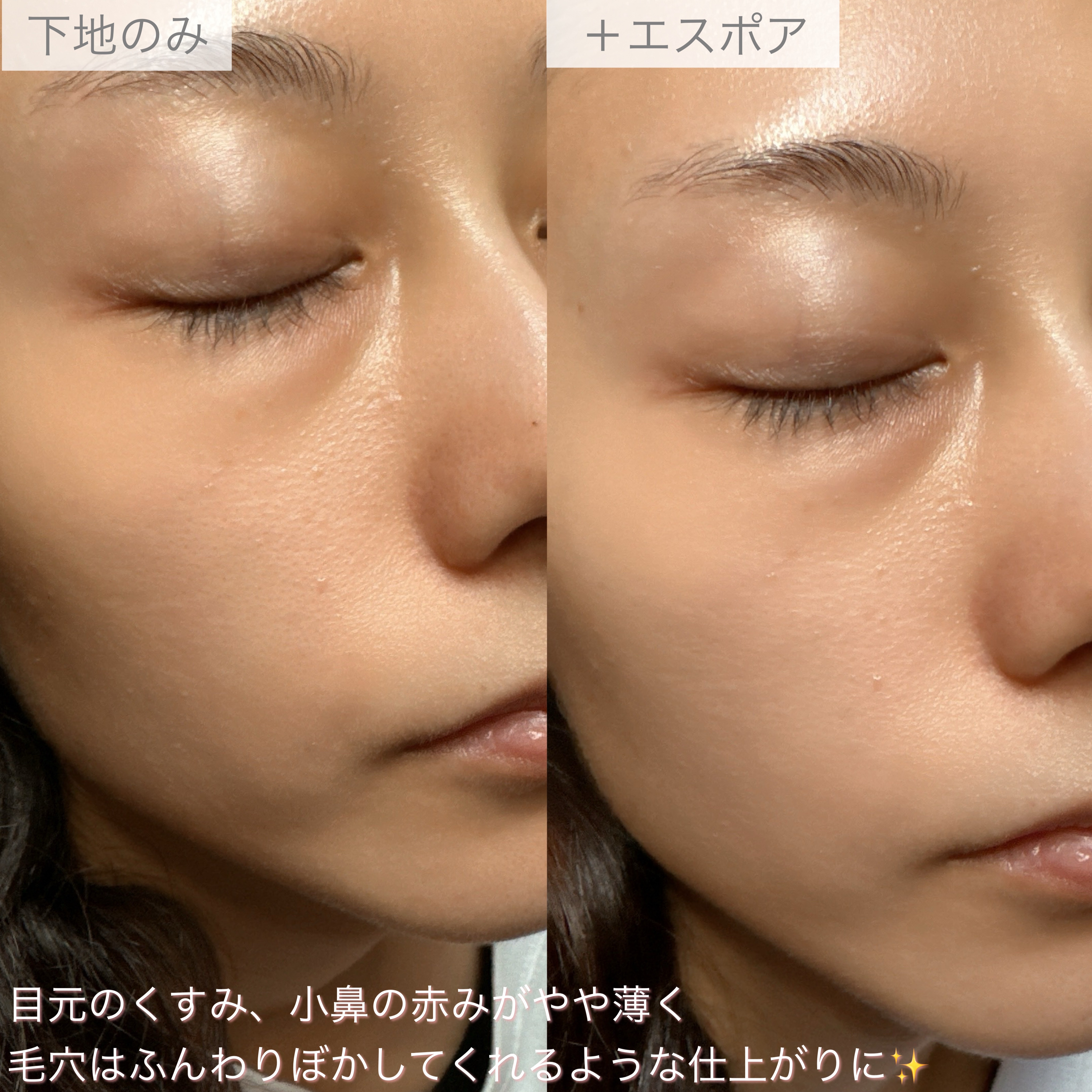 ・サラッとしたテクスチャーで伸ばしやすい・ベタつかず、軽いサラッとした着け心地・毛穴をぼかしてくれる・今回のカラーはほんのりトーンアップで肌馴染みが良かった・マスク着用で過ごしたが毛穴浮きなどしなかった・花のような香りがするが強くないので気にならない ・サラッとしたテクスチャーのリキッドでとても塗りやすく、全部隠しきらない謳い文句の素肌っぽい仕上がりが実現💪💕 色選びの際はネットで検索しニュートラルカラーなら大丈夫そうかな〜と今回の色を選ばせていただきました。トーンアップ効果も欲しかったのでニュートラルカラーの中でも少し明るめのカラーを選びました。