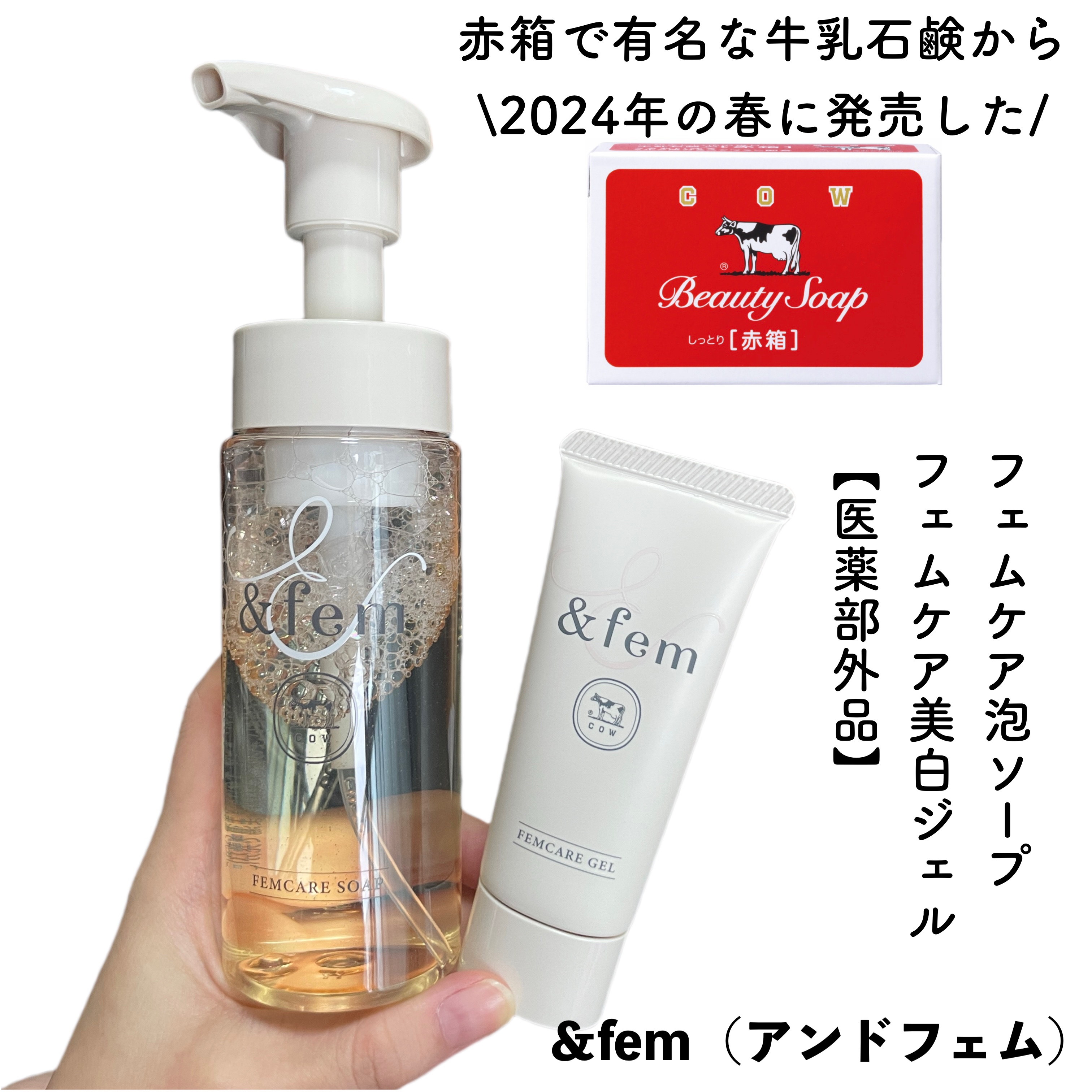 &fem(アンドフェム)@andfem_official赤箱でおなじみの「牛乳石鹸」から初めて誕生したフェムテックブランドだよ🐮❤️🤍フェムケア泡ソープ🤍フェムケア美白ジェル【医薬部外品】デリケートゾーンのpHにあわせた弱酸性処方で、泡ソープ...