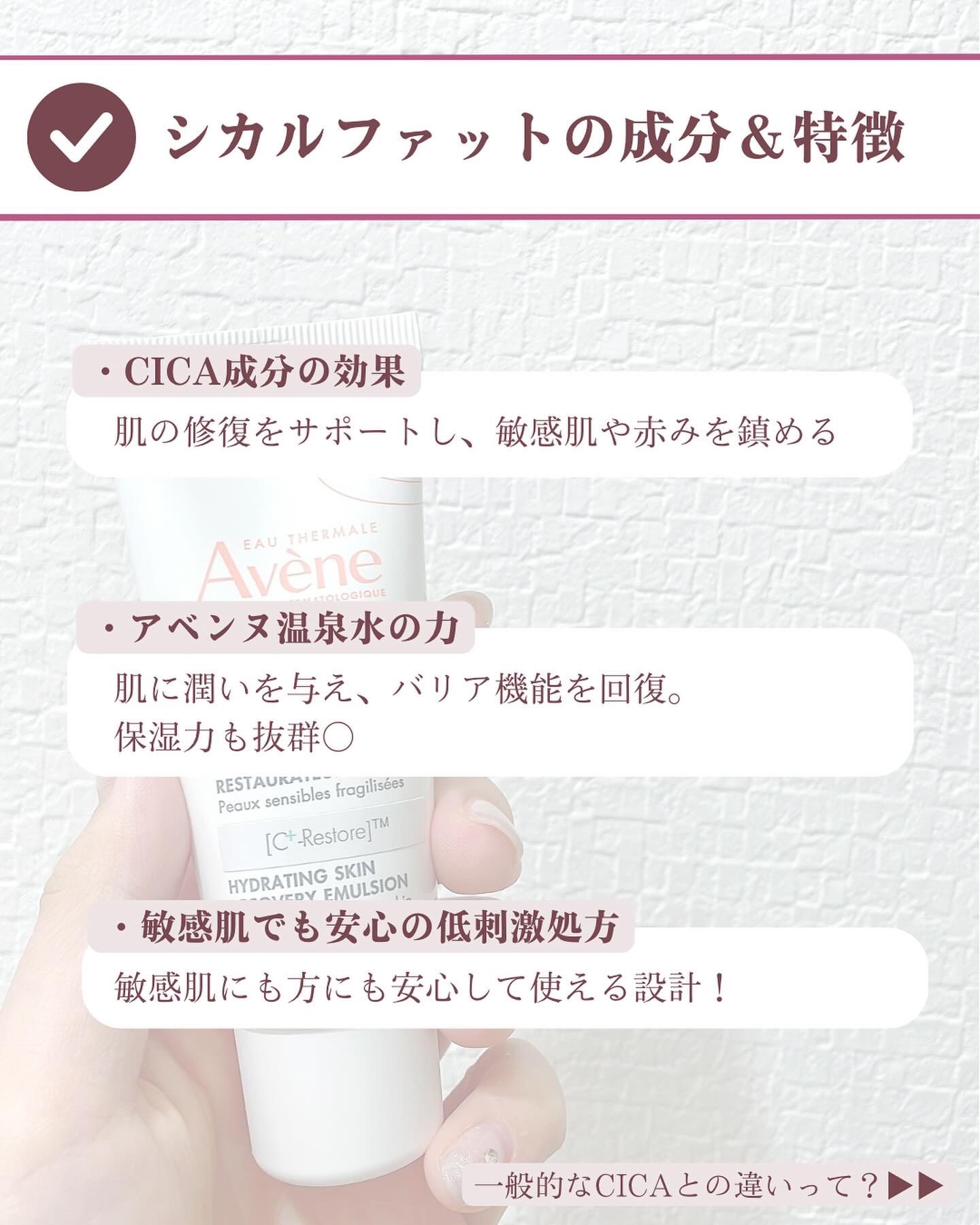 アベンヌ_提供夏の紫外線ダメージや季節の変わり目で肌がゆらぎやすい時期に、アベンヌの【シカルファットプラスリペアクリーム】を使い始めました!このクリームの最大の特長は、一般的なツボクサエキス(CICA)ではなく、アベンヌ独自のCICA成分【セ...