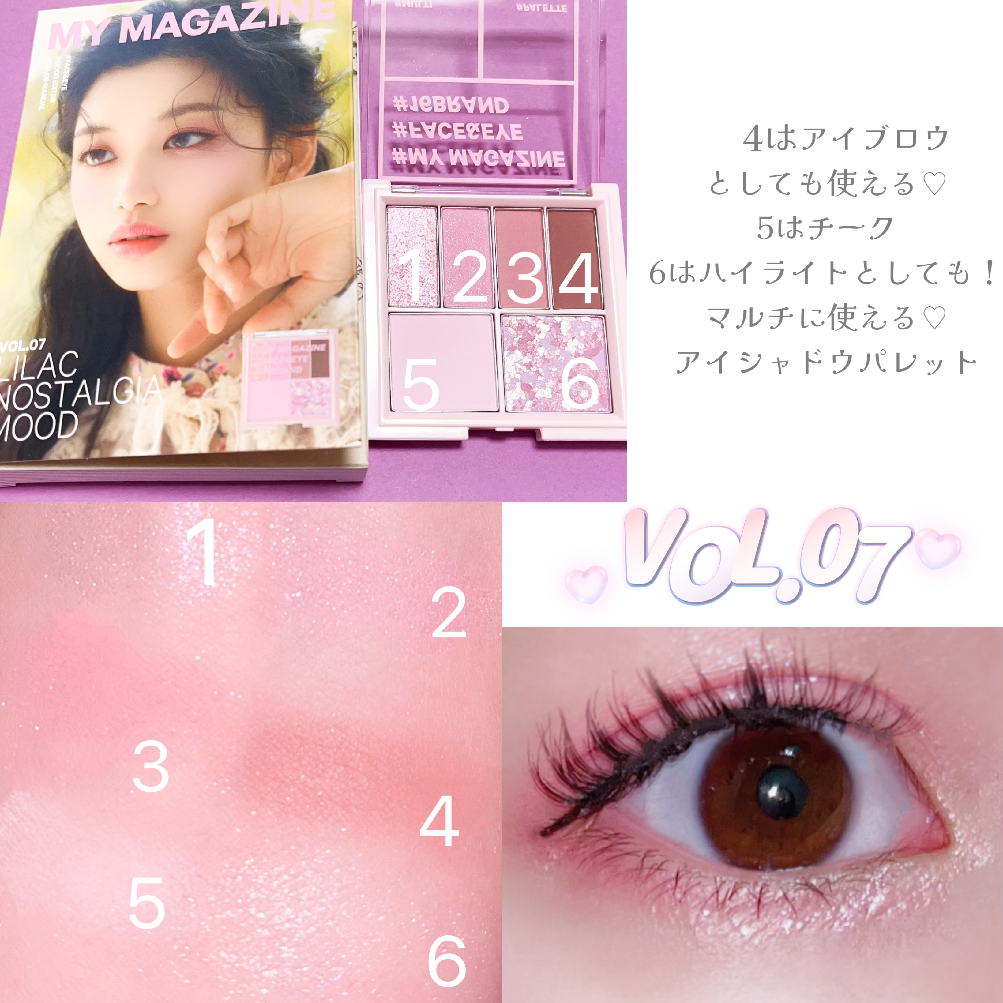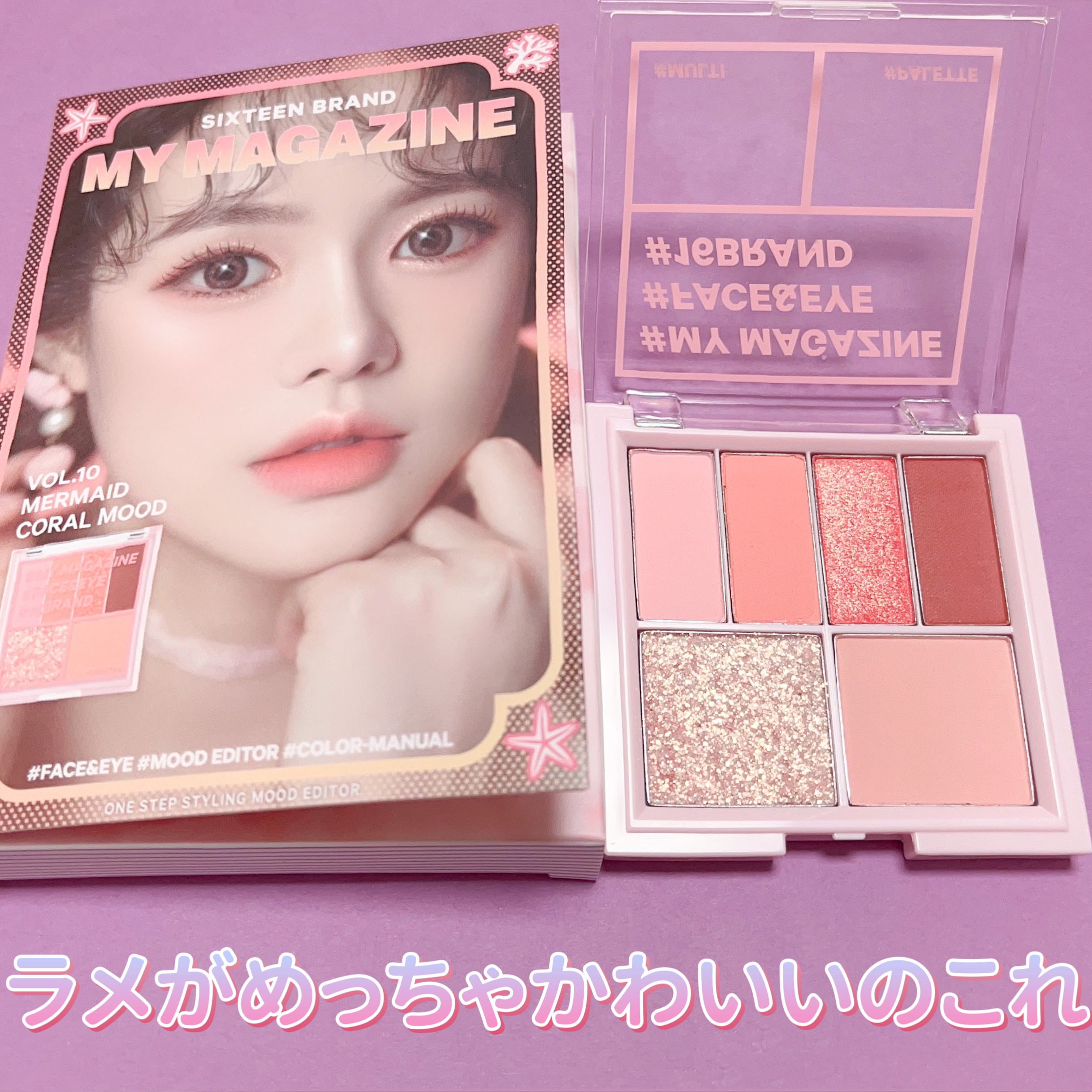 全10色のマルチに使えるパレット!アイシャドウはもちろん、ブロウやライナーシェーディング、ハイライター、チークとしても使えるから統一感のあるメイクに。 特にマーメイド珊瑚ムードのコーラルカラーがお気に入りです◎ パッケージがまるで雑誌みたいに可愛くて参考になる情報が書かれてるからひとつは持っておきたいアイテム♡