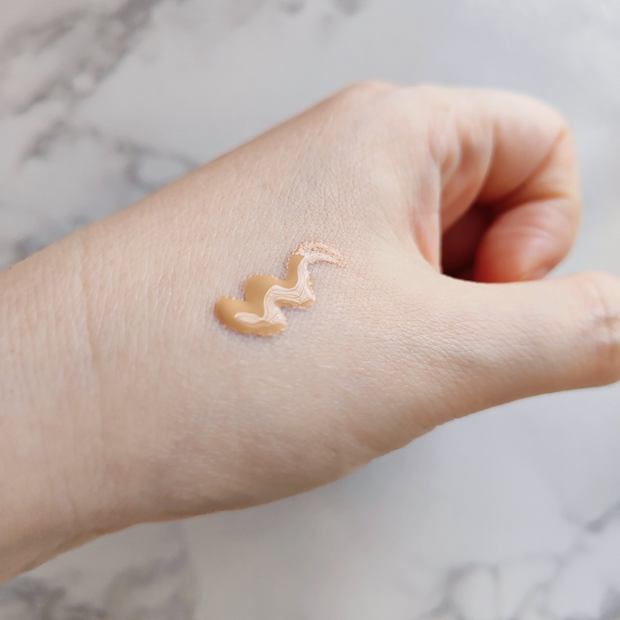 テクスチャーはみずみずしくサラサラ。 べたつかないから、軽いタッチで使えます。(二層式なので使う前に良く振って) ほんのりベージュ色をしていますが、馴染ませるとクリアに。 頬や鼻まわりの赤みや毛穴を整え、ふんわり目立たなくしてくれます。 自分の肌色を選ばず使いやすい所もいいですね。