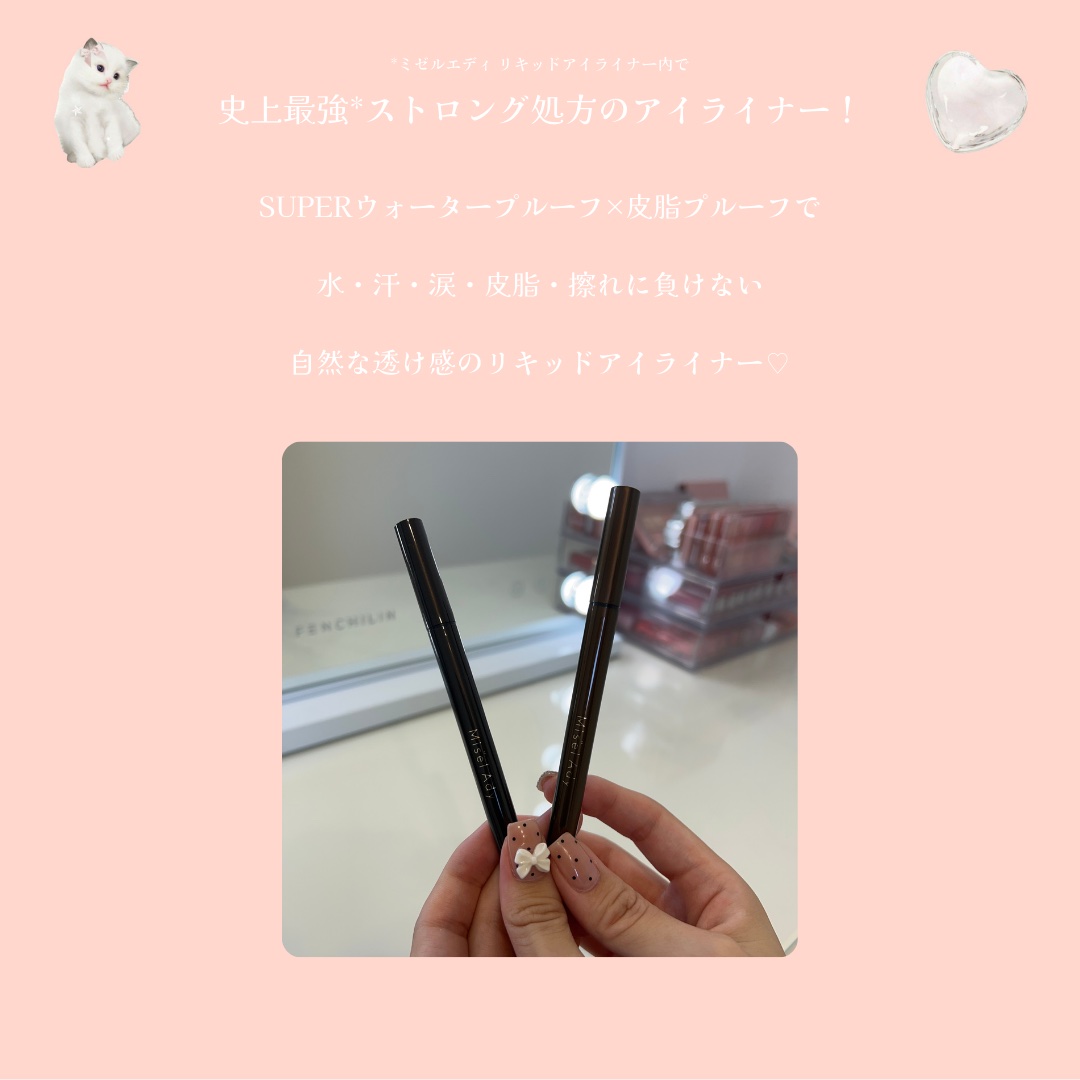 ♡ミゼルエディリキッドアイライナー01ちょい透けブラック02ちょい透けブラウン@_squseme_自然な抜け感が叶う、絶妙な「ちょい透け」発色のリキッドアイライナー🕊️🤍先端0.1mmの極細筆で、水・汗・皮脂・こすれにも負けないストロング処方...
